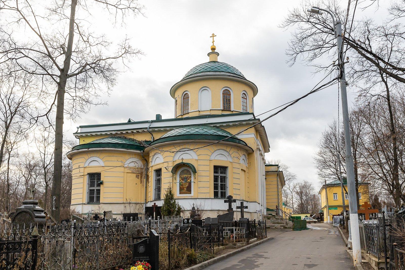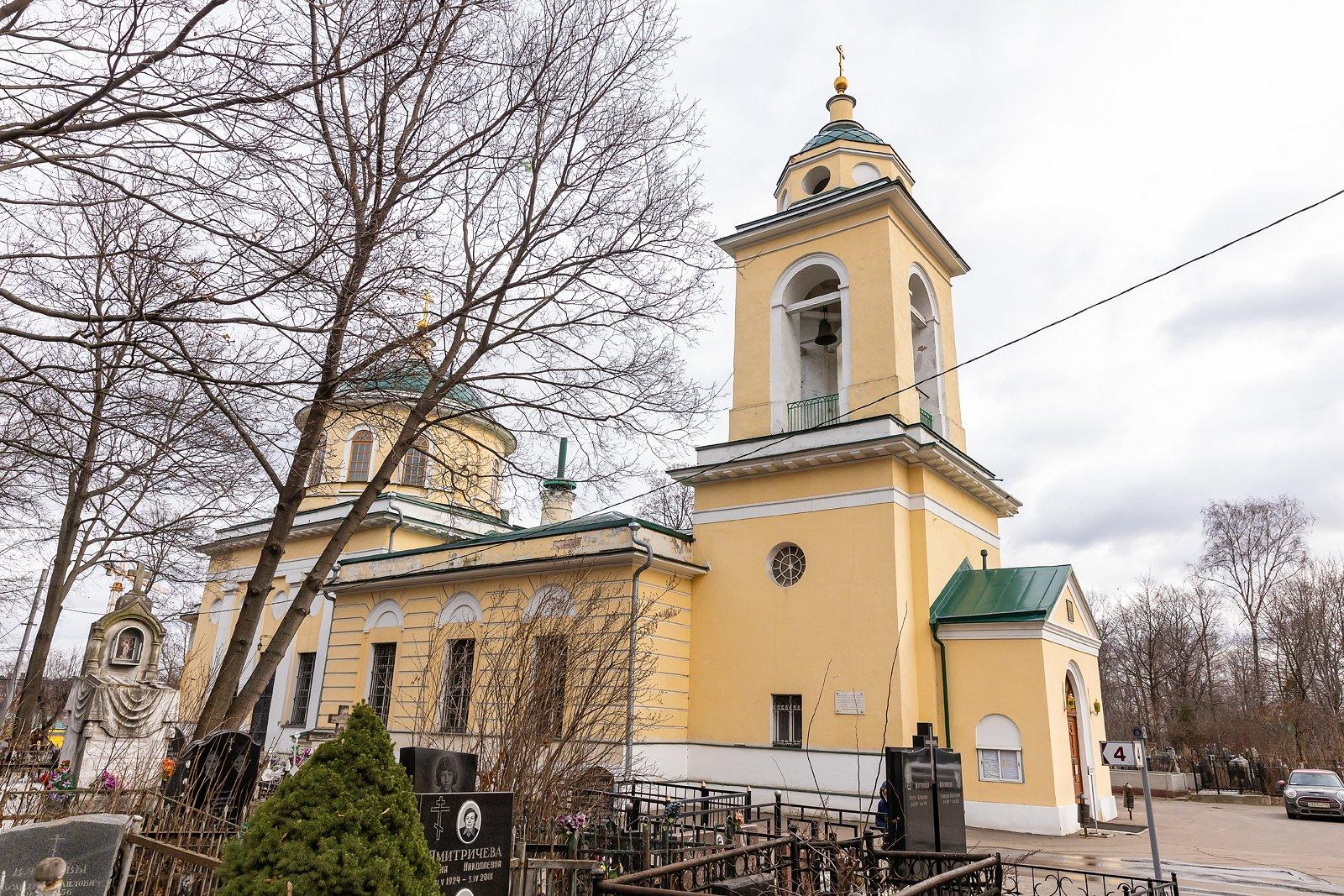 Белоснежная церковь в стиле ампир с большой колокольней, где проходят службы по усопшим, была построена на месте деревянного храма в честь священномучеников Херсонских. Первый храм был возведен в конце 1772 года.
