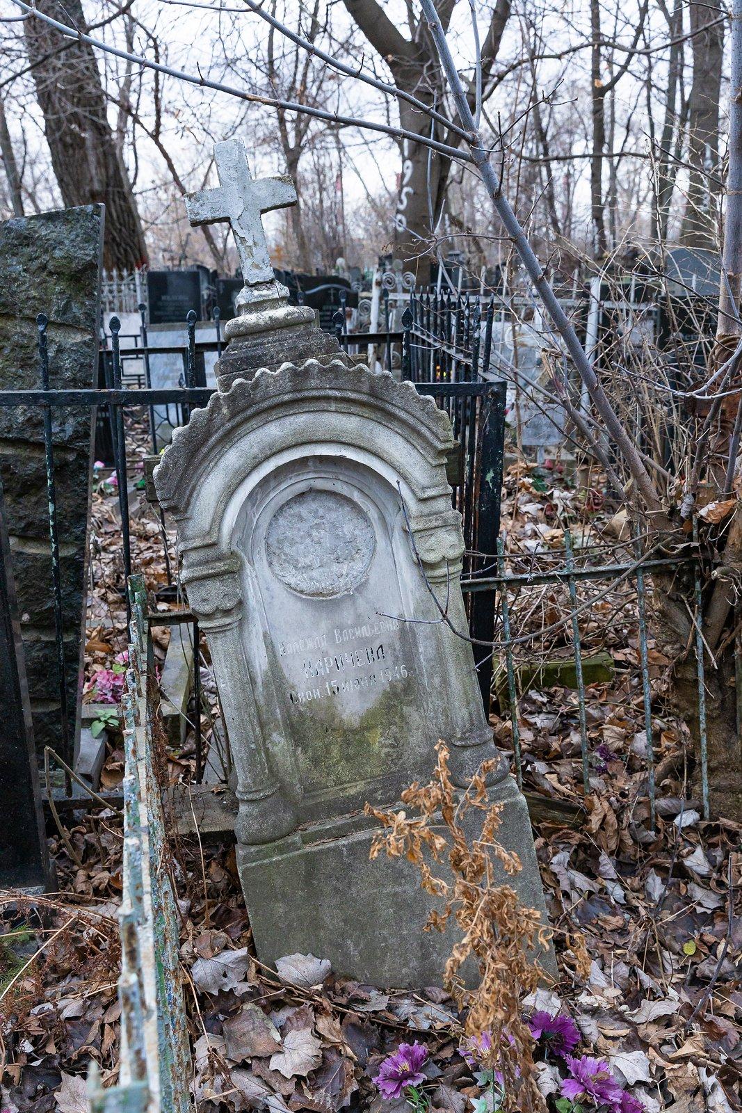 «Даниловское кладбище можно смело назвать купеческим, да другим оно и быть не могло, близко примыкая к купеческому Замоскворечью. Пожалуй, ни на каком больше московском кладбище нет такого обилия купеческих памятников, как на этом. Типичные для середины прошлого века надгробия в форме цилиндрических колонн, конусов, обращённых вниз остриями, колонн, перебитых кубом, попадаются здесь во множестве».