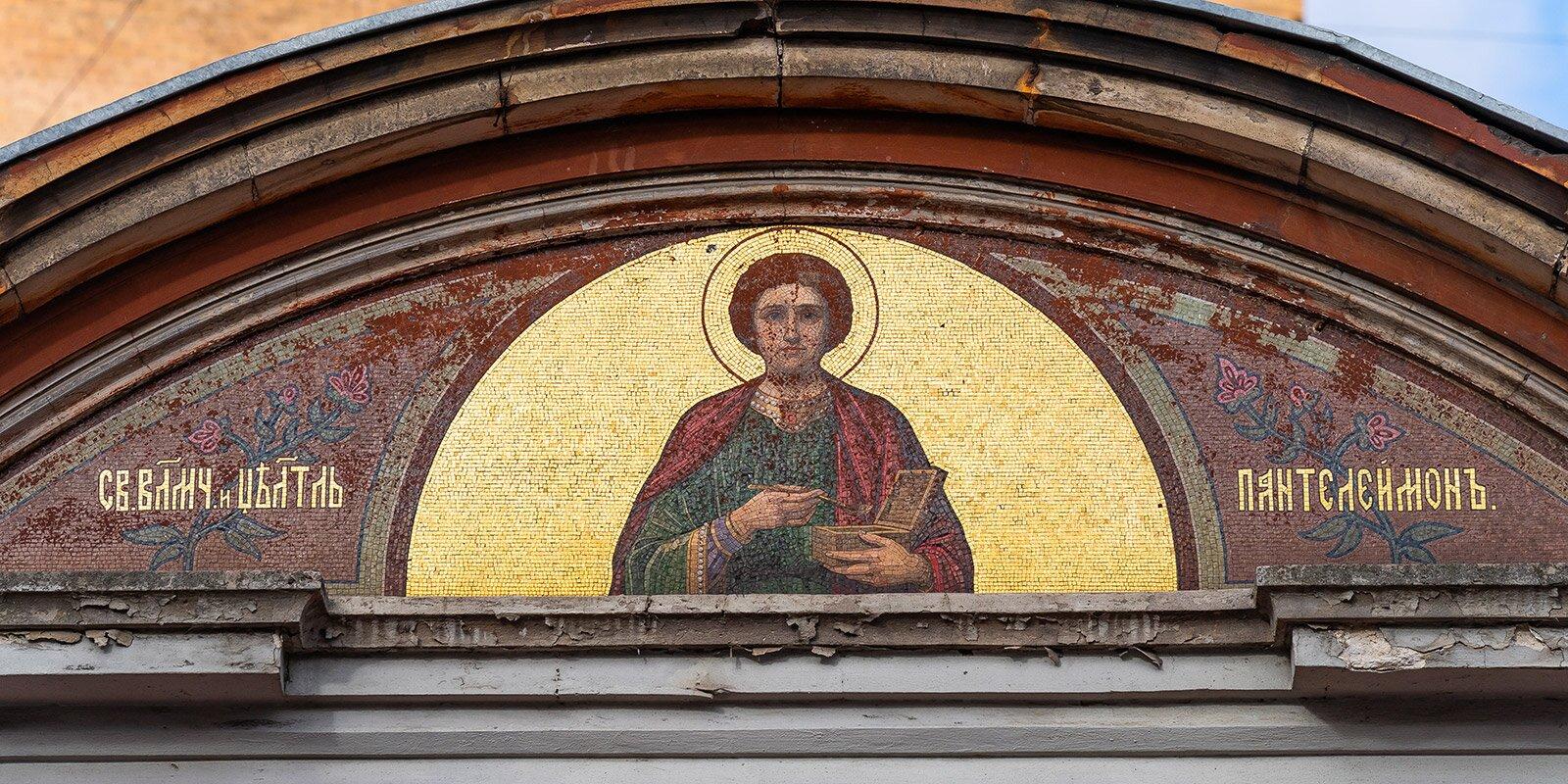 Краснокирпичные здания больницы сохранили на своих стенах интересные мозаики: лик св. Ольги и св. Пантелеймона.