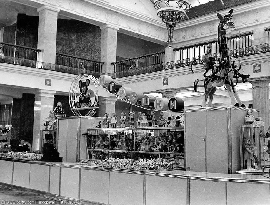 Идея строительства крупнейшего в Европе универмага для детей возникла в самом начале 1950-х. Для работы над проектом был приглашен один из ведущих советских архитекторов А. Душкин. Соавторами выступили архитекторы И. Потрубач, Г. Аквилев и инженер Л. Глиэр.