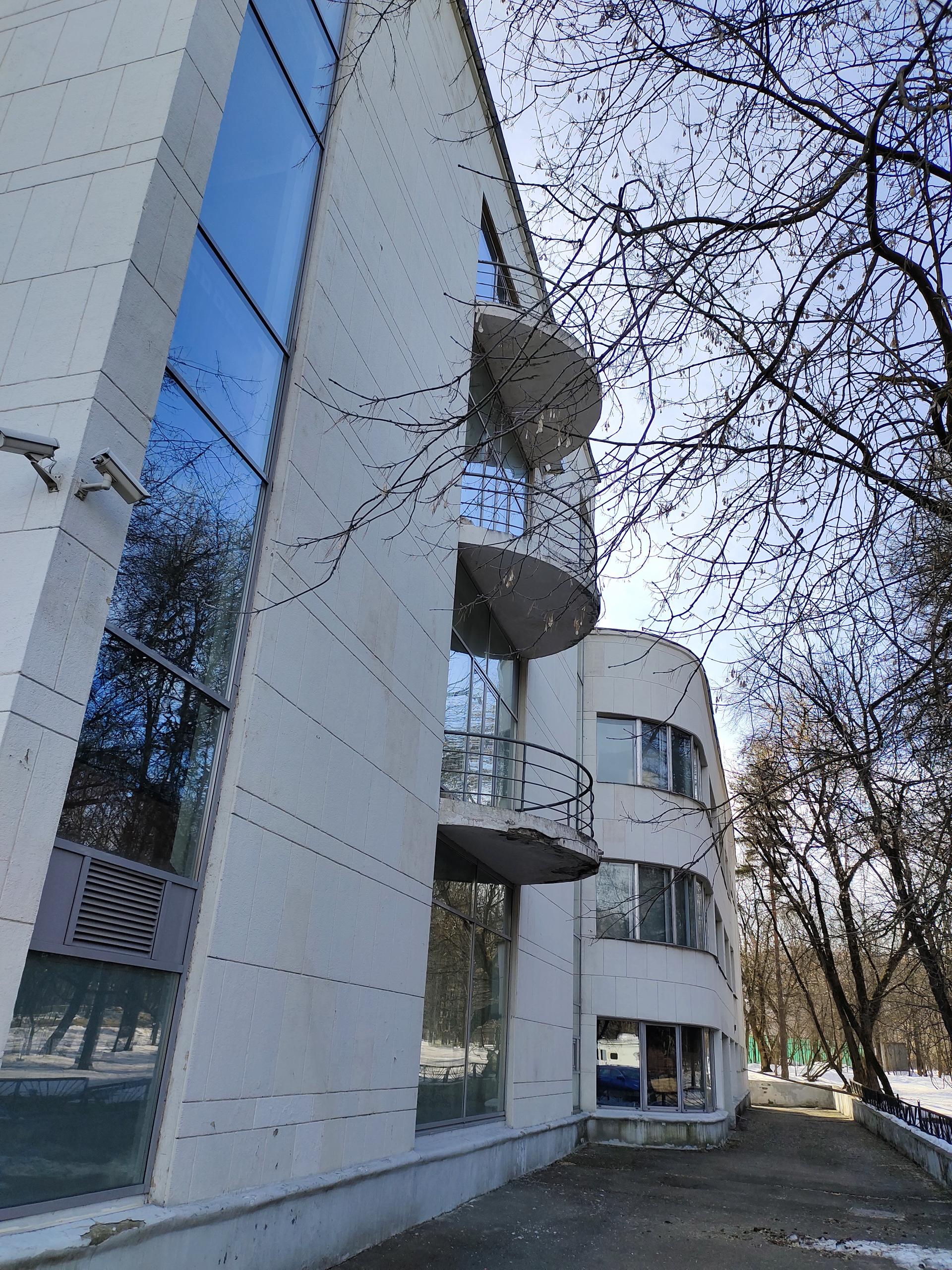 Построенный в 1929–38 годах по проекту Я. Корнфельда, ДК расположен на окраине парка и главным фасадом ориентирован на проходные авиазавода.