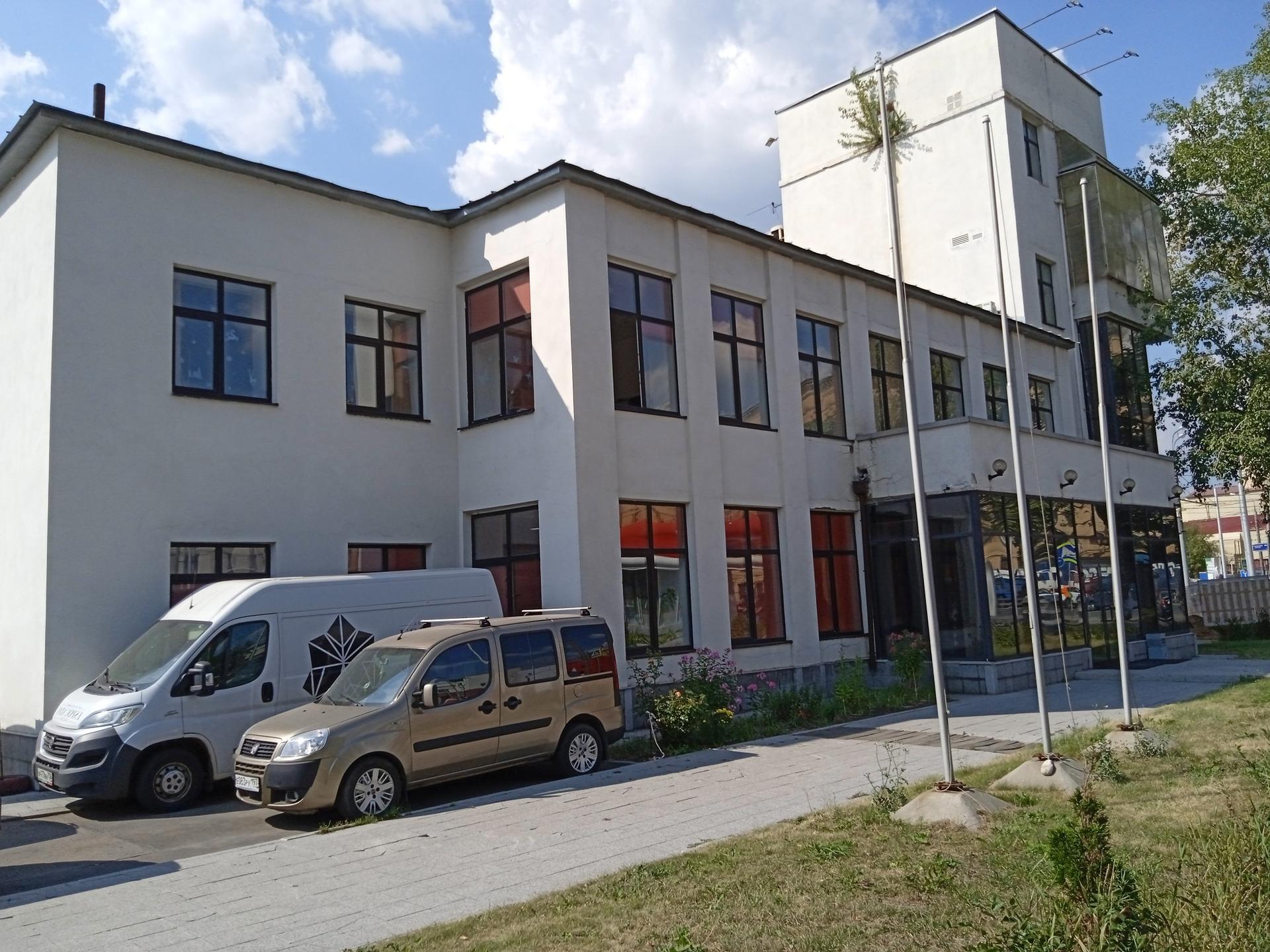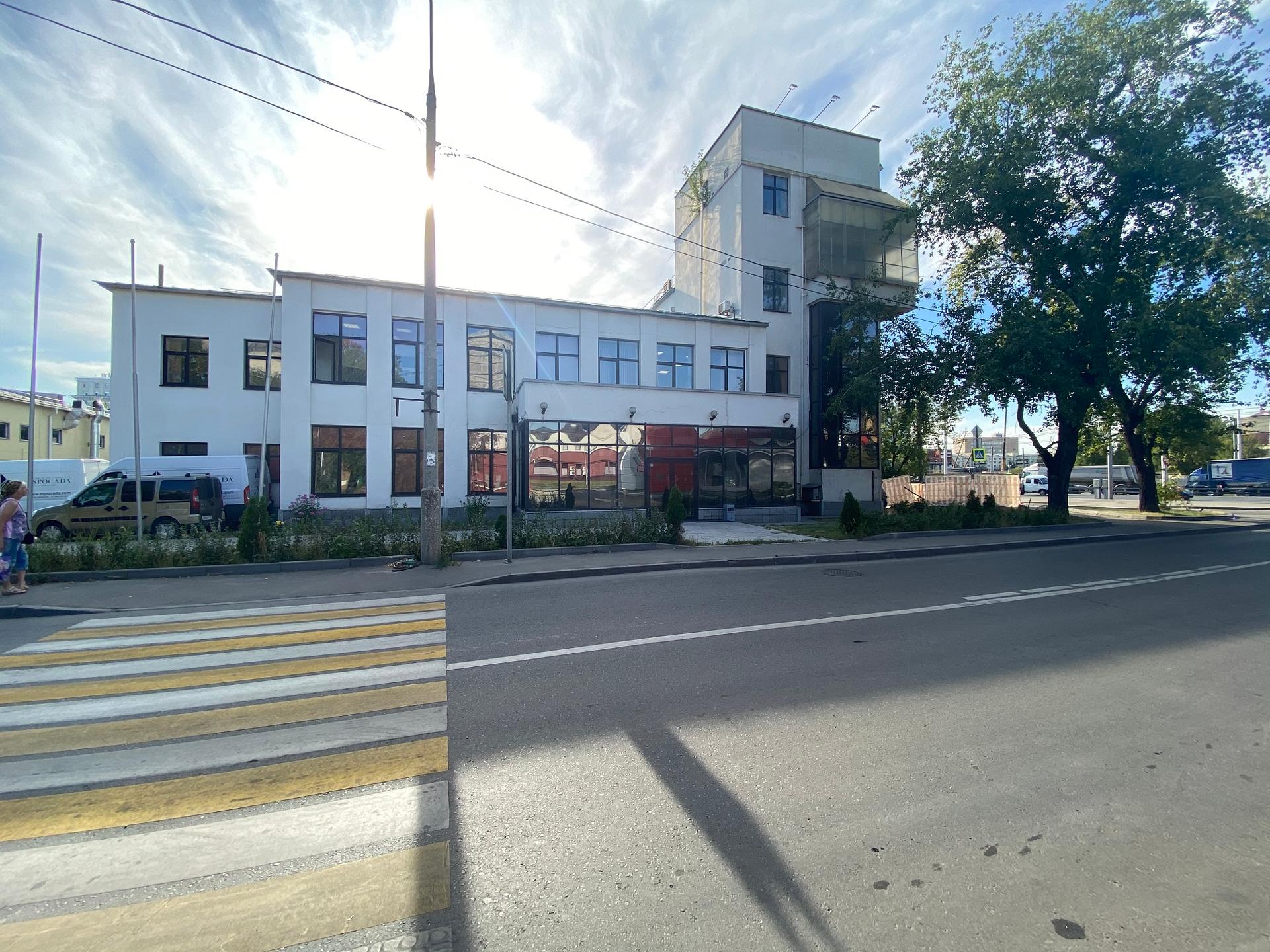 В основе композиции 2 корпуса, соединенные галереей. Обе части выполнены как совокупность простых геометрических форм. Контуры и силуэты, образованные прямыми линиями и большими стеклянными поверхностями, создают впечатление железобетонной конструкции, хотя здание кирпичное. Угловая башня, опоясанная угловым балконом фиксировала угол, где дорога, ведущая от проходной завода вливалась в магистраль Шоссе Энтузиастов.