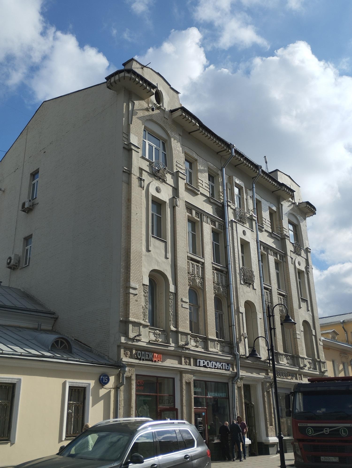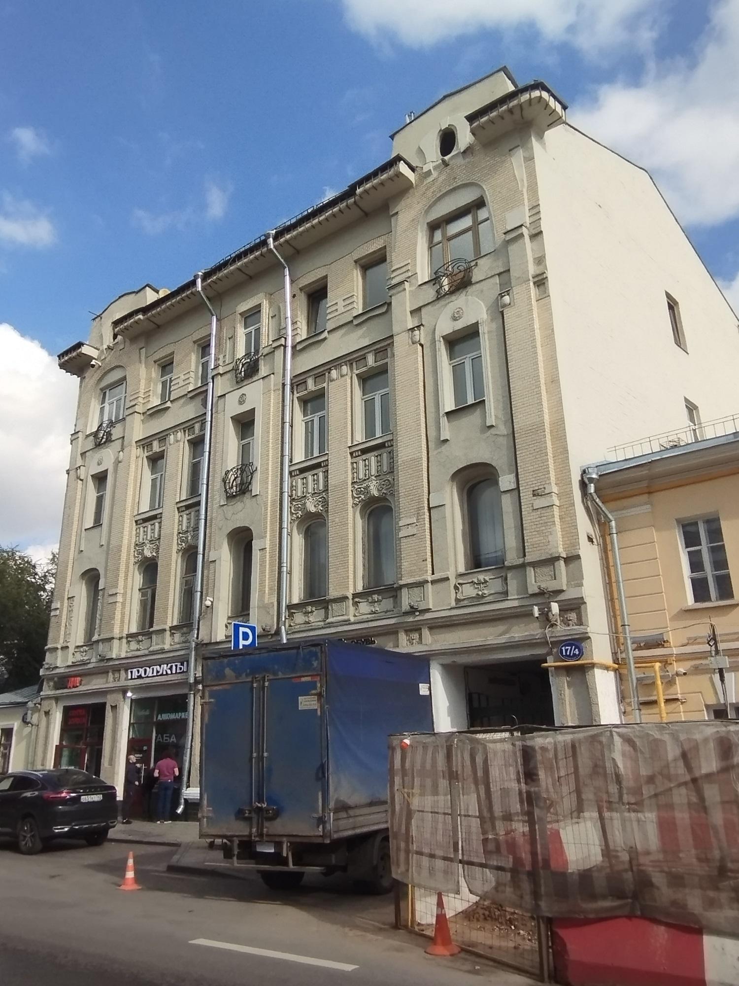 Дом № 17 по Пятницкой улице был построен по заказу купца, владельца гастрономических и винных магазинов, члена Попечительской школы «Торговлеведение» Аникиты (Никиты) Николаевича Громова по проекту архитектора Семёна Федосеевича Суворова. Пожалуй, доходный дом на Пятницкой – это единственная постройка, возведённая зодчим в Москве. Тем ни менее, здание получилось достаточно интересным. Облицовка фасада кремовой керамической плиткой, подчёркивающая вертикальные членения структуры здания, сочетается с оштукатуренными поверхностями стен первого этажа, фриза, оконных обрамлений. Большую роль в оформлении фасада дома играли не сохранившиеся до наших дней балконы. В советское время в доме располагались коммунальные квартиры. Жилым он является и сейчас.