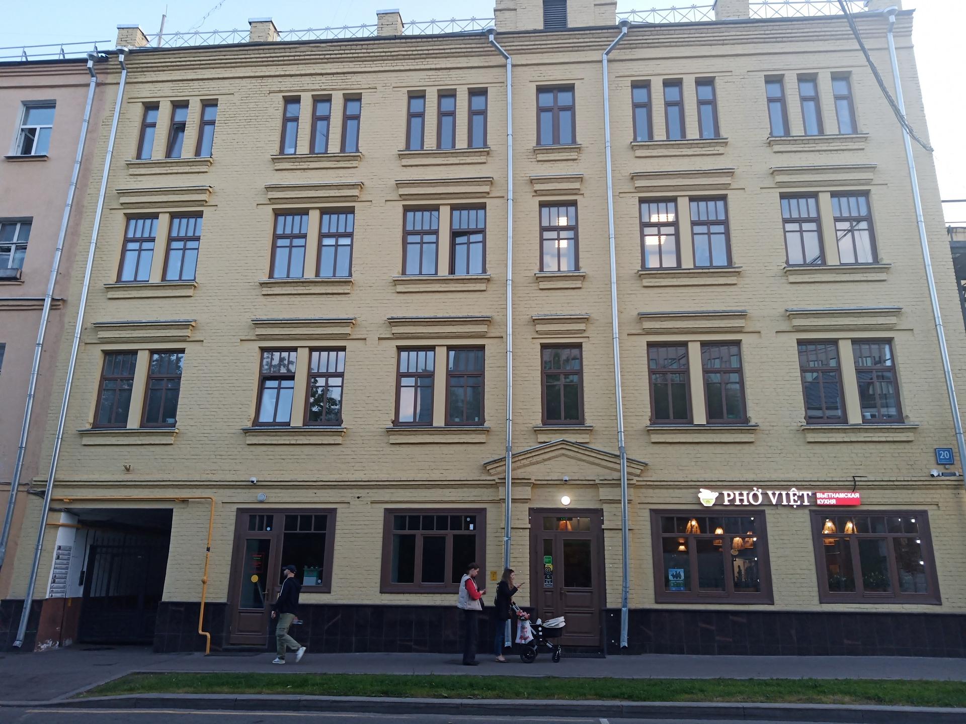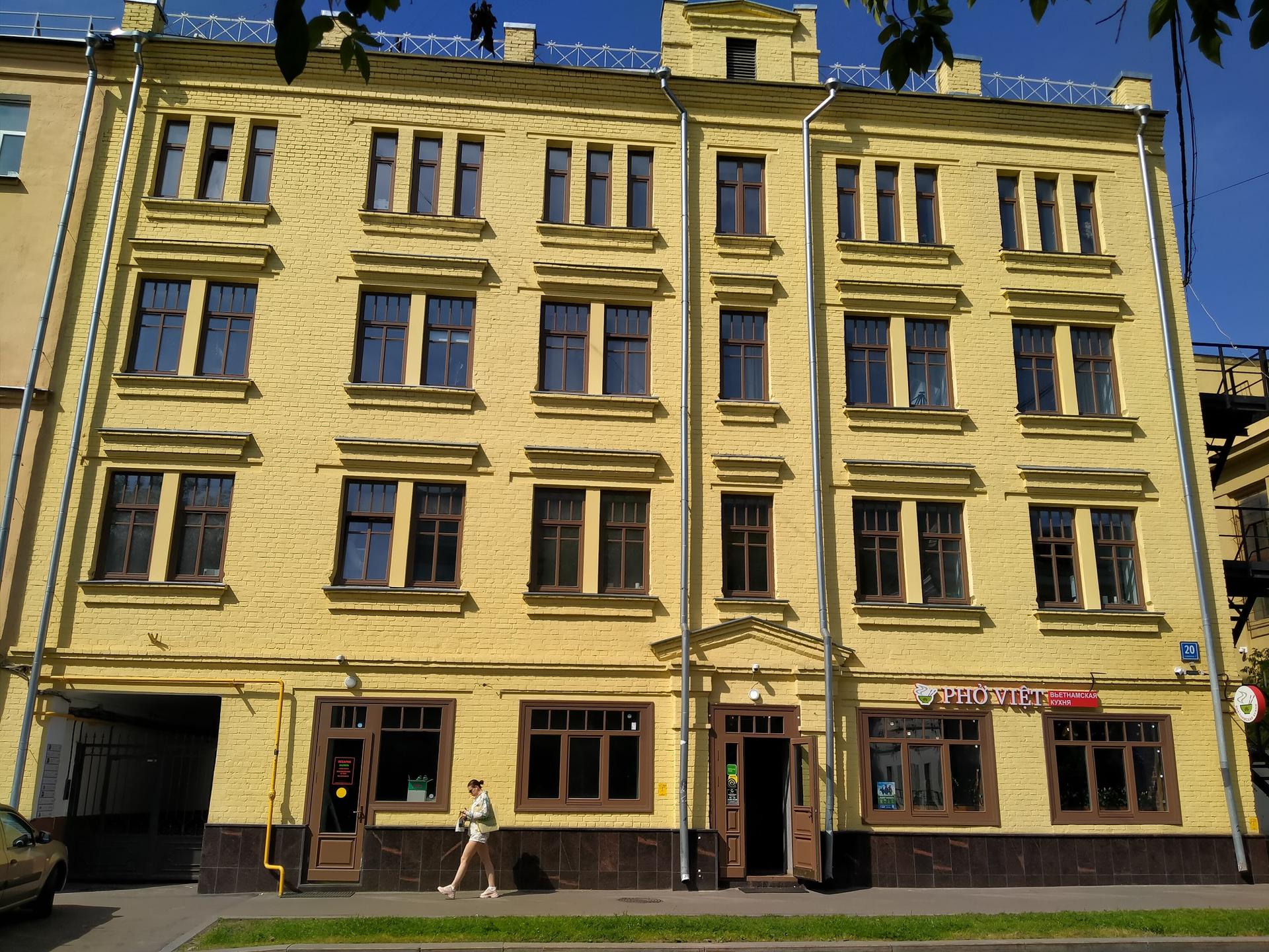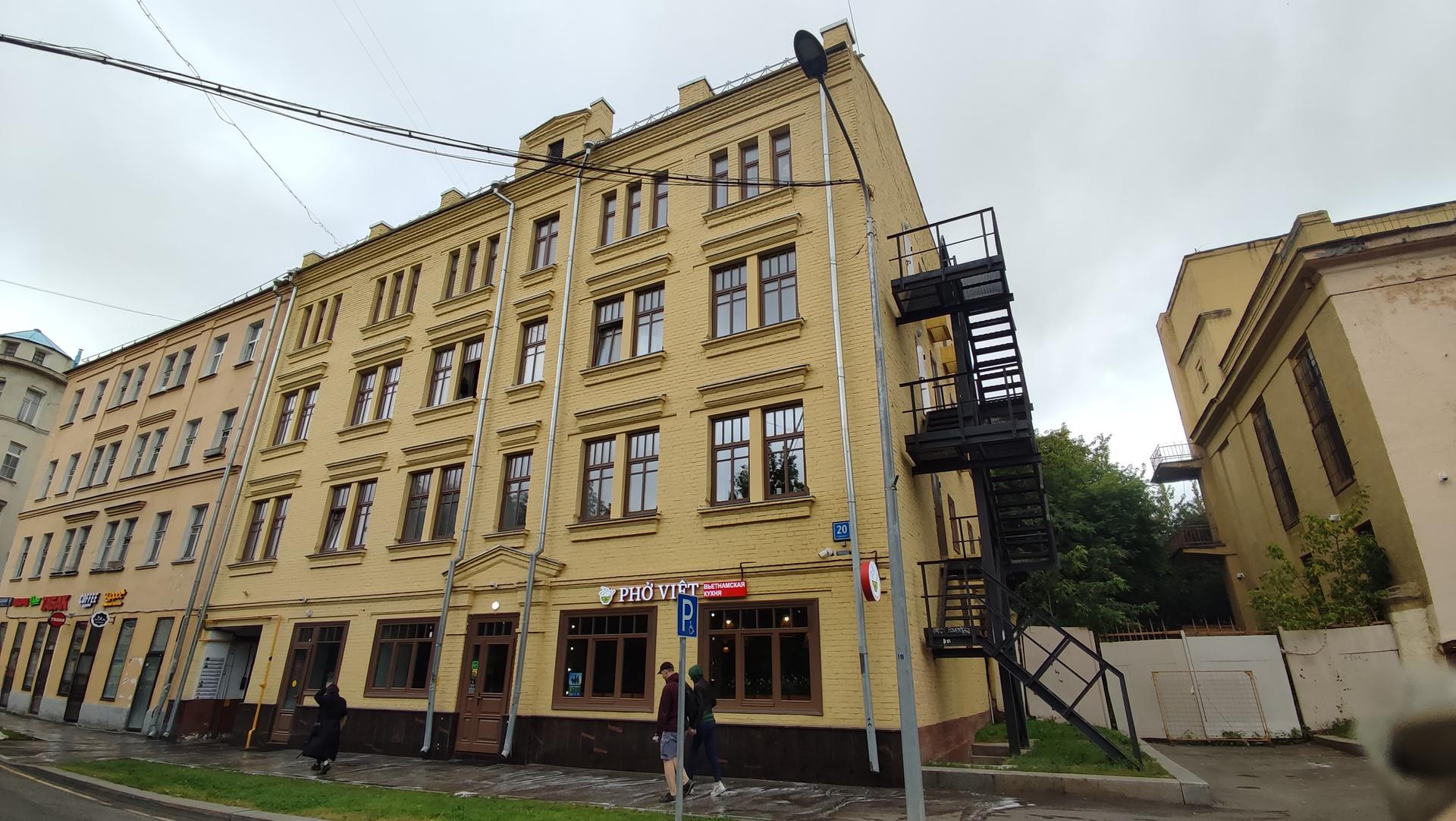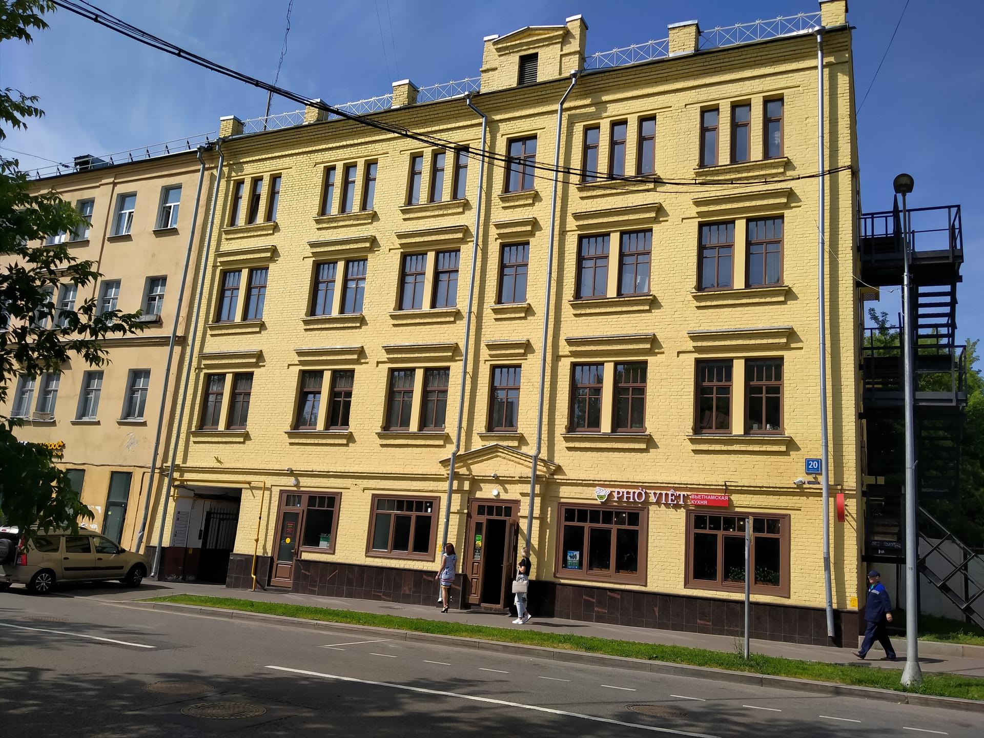 Главный фасад дома выходит на красную линию Большой Татарской улицы и имеет лаконичный облик с кирпичным декором. Этот уникальный дом сохраняет привычный облик Замоскворечья - одного из самых живописных уголков исторического центра столицы. Несколько лет назад, после того как в 2005 году его признали аварийным, дом хотели снести, но многочисленные письма и выступления архитекторов, историков города и просто активных жителей сделали свое дело. Дом не просто выжил, но и приказом Департамента культурного наследия города Москвы был включен в перечень выявленных объектов культурного наследия города. Он был построен по заказу татарского купца Абдуллы Салеховича Танеева. Четырёхэтажный одноподъездный кирпичный жилой дом на 15 квартир. Сейчас на строениях 1 и 2 висит один общий номер, 20 (без строения). Вторую часть пристроили в 1955 году.