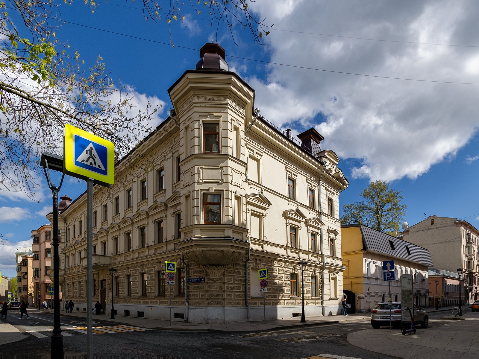Прогуливаясь по Большому Харитоньевскому переулку, столь богатому архитектурными памятниками разных эпох – от палат XVII-го века до доходных домов начала XX-го и конструктивистских жилищных кооперативов советской эпохи – невозможно не обратить внимание на массивное здание, фасадом выходящее на Большой Харитоньевский, но при этом занимающее все пространство между улицами Жуковского и Чаплыгина.