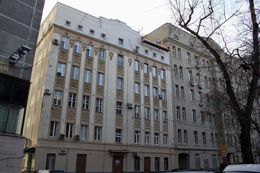 Эти два доходных дома, имеющие общий номер 21, смотрят сейчас на Новый Арбат. В доме № 21а (1912, архитектор О. Г. Пиотрович) до революции жил Н. В. Баснин, имевший богатейшую коллекцию гравюр, где была представлена русская графика и все западноевропейские школы. Все его 14 тысяч гравюр, и в том числе необыкновенно редкие, ныне находятся в Государственном музее изобразительных искусств им. А. С. Пушкина.