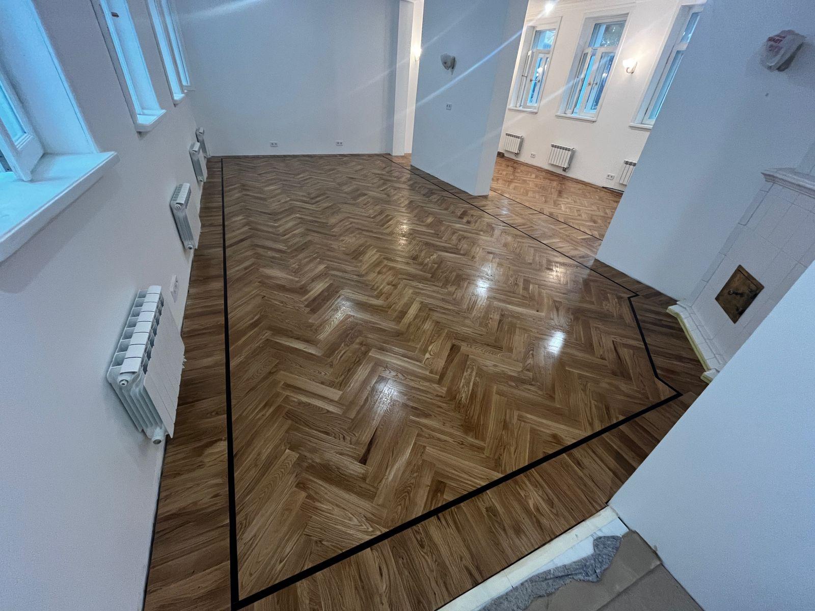 На объекте проведены усиление фундаментов, выравнивание цоколя и приведение его к проектному положению кирпичной кладкой, переборка, выравнивание и установка внутренних конструкций усиления сруба, устройство деревянных межэтажных перекрытий, реставрация стропильной системы с заменой обрешетки, замена оконных заполнений на аутентичные, устройство уличных дверных заполнений, воссоздание лестниц на второй этаж и исторических отопительных приборов с облицовкой изразцами, реставрация лепного декора, окраска фасадов.