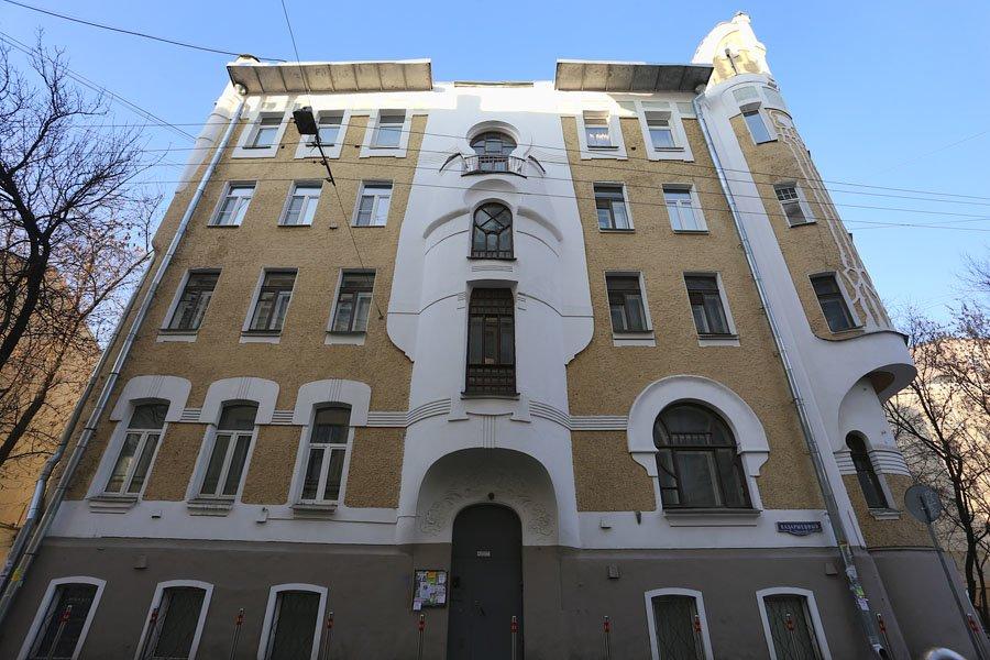 Дом № 18 в Подсосенском (бывшем – Введенском) переулке – один из интереснейших московских доходных домов, выстроенных в стиле модерн. Возведён он был в 1903 году по проекту архитектора Георгия Ивановича Макаева для жены губернского секретаря Тарховой Надежды Гавриловны, которой этот участок принадлежал ещё с XIX века. Но уже через пару лет Макаев сам приобретает этот дом у прежней владелицы.