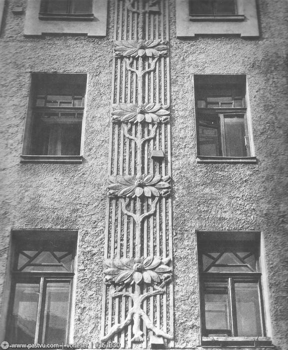 «Дом с кошками» - в верхней части углового эркера дома имеется интересное барельефное изображение в виде стилизованных кошачьих голов. «Туловище» и «лапы» этих «кошек», больше похожие на причудливо изогнутые лианы, спускаются до нижней части эркера. Помимо этого эркер украшен двумя навершиями, которые придают дому схожесть с огромной улиткой.