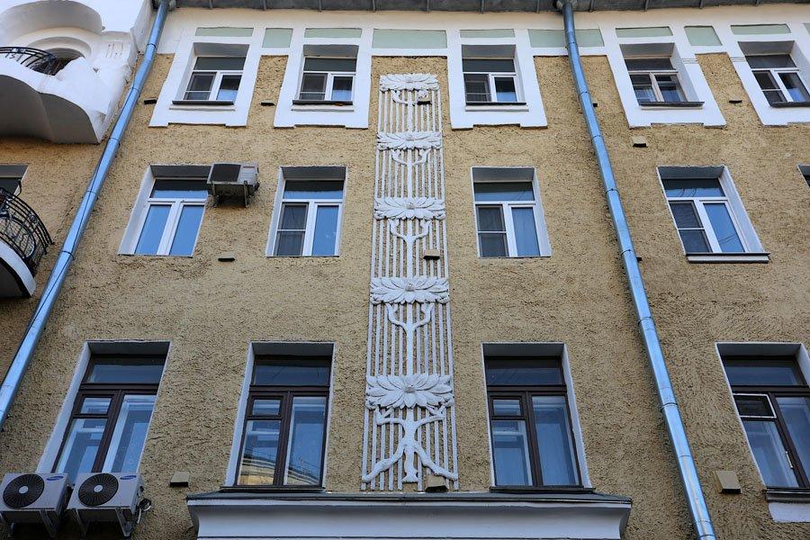 Наконец, встречается ещё одно название: «дом с кактусами». Стену здания со стороны Подсосенского переулка отмечает вертикальный барельеф в виде пяти диковинных цветков, один над другим. Ряд исследователей видят в них сходство с цветущим кактусом (впрочем, возможно, что это привычные для нас ромашки). Похожая декоративная деталь встречалась в южно-американском модерне начала ХХ века.
