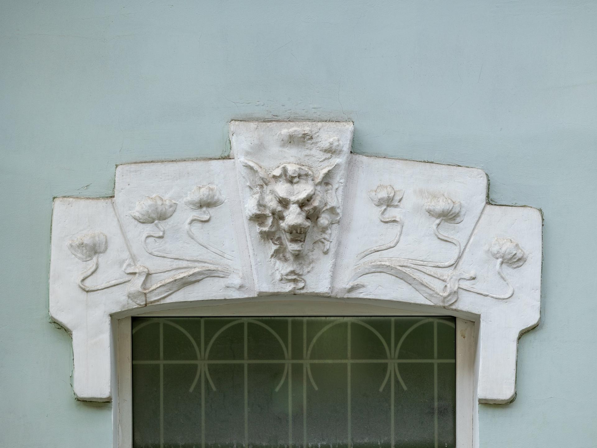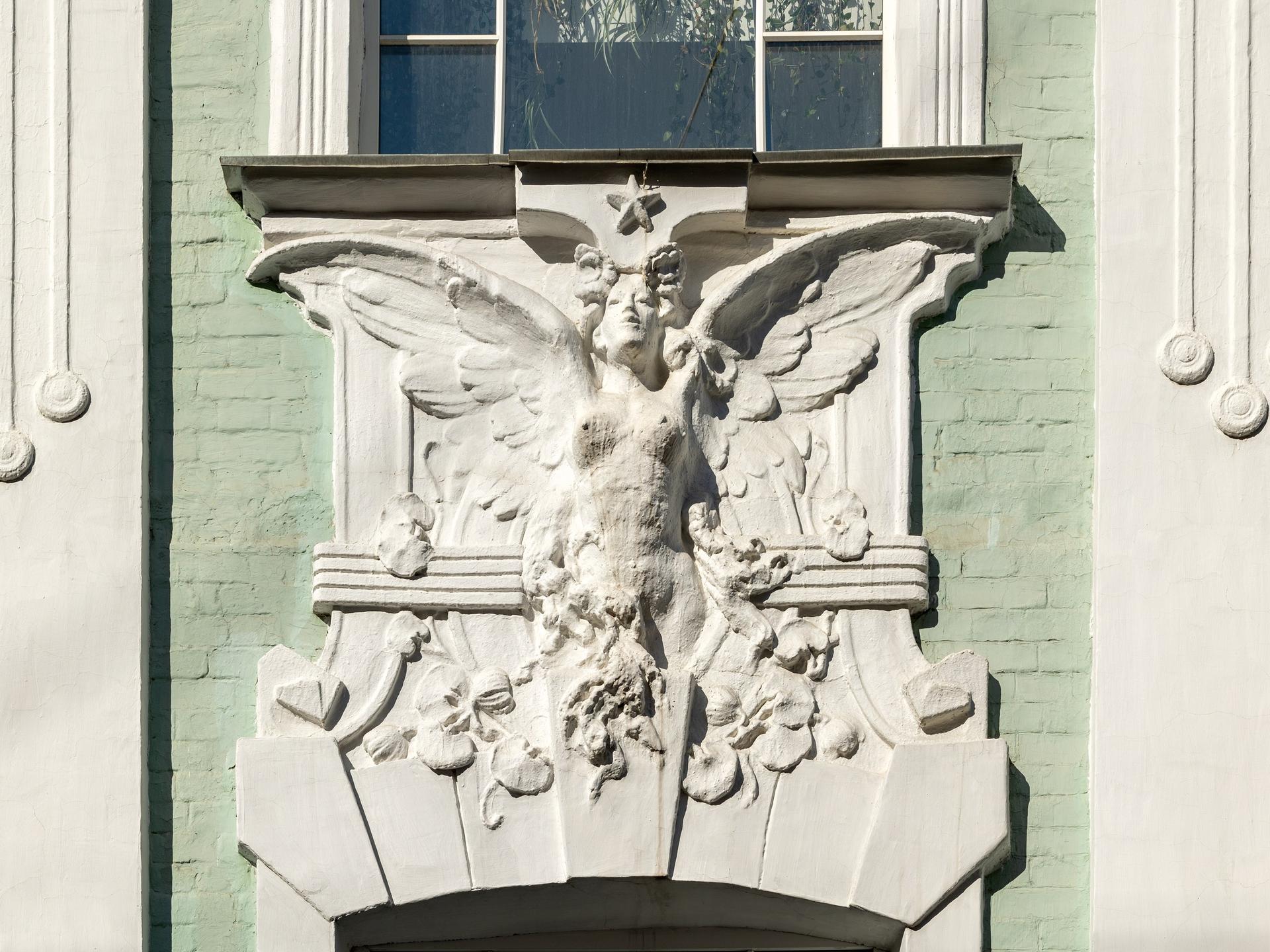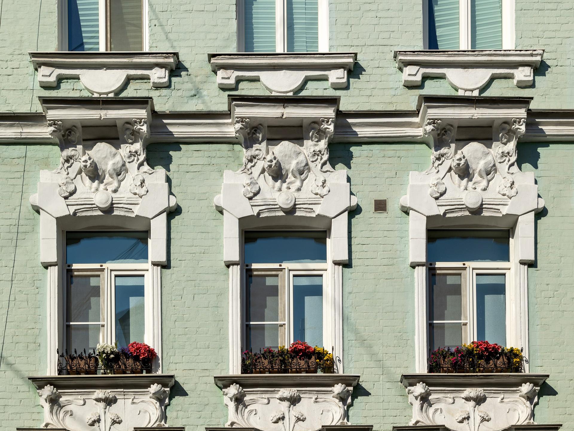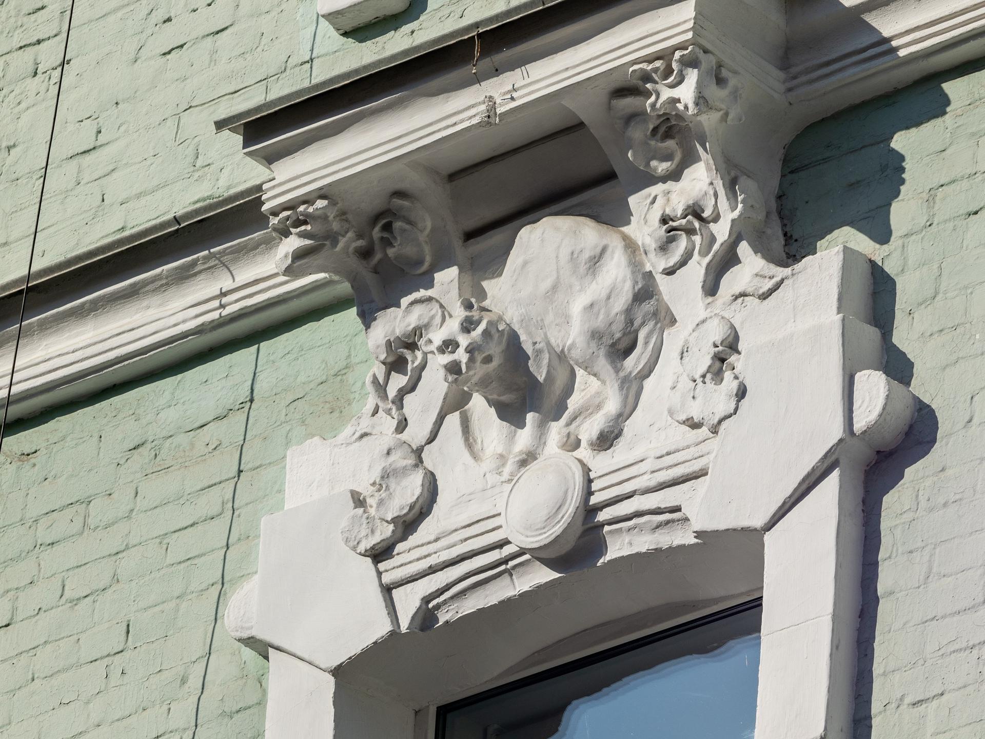 Здание в Большом Козихинском переулке — образец доходного дома среднего класса с пяти- и шестикомнатными квартирами. В первую очередь внимания заслуживает его уникальный фасад, декорированный разнообразными необычными художественными элементами. Стилистика его оформления является редким примером московского модерна в раннем, тяготеющем к образам символизма варианте. Горожане могут разглядеть здесь растительные и животные мотивы. Например, оконные проемы украшают скульптуры в виде голов лисиц, шипящих кошек с выгнутыми спинами и химер. Кроме этого, на фасаде можно найти скульптурное изображение птицы Сирин и капители в виде женских голов в средневековых шлемах.