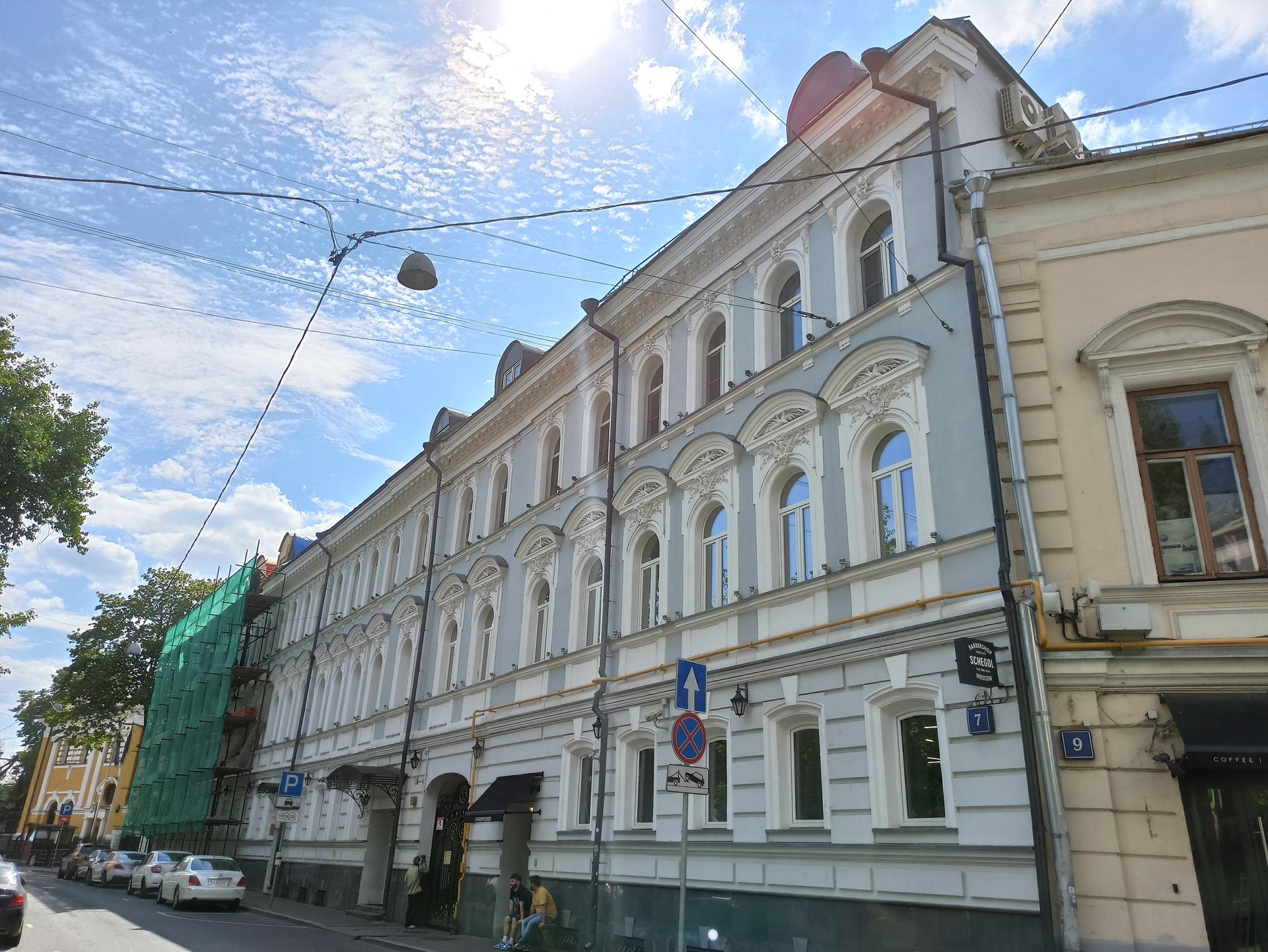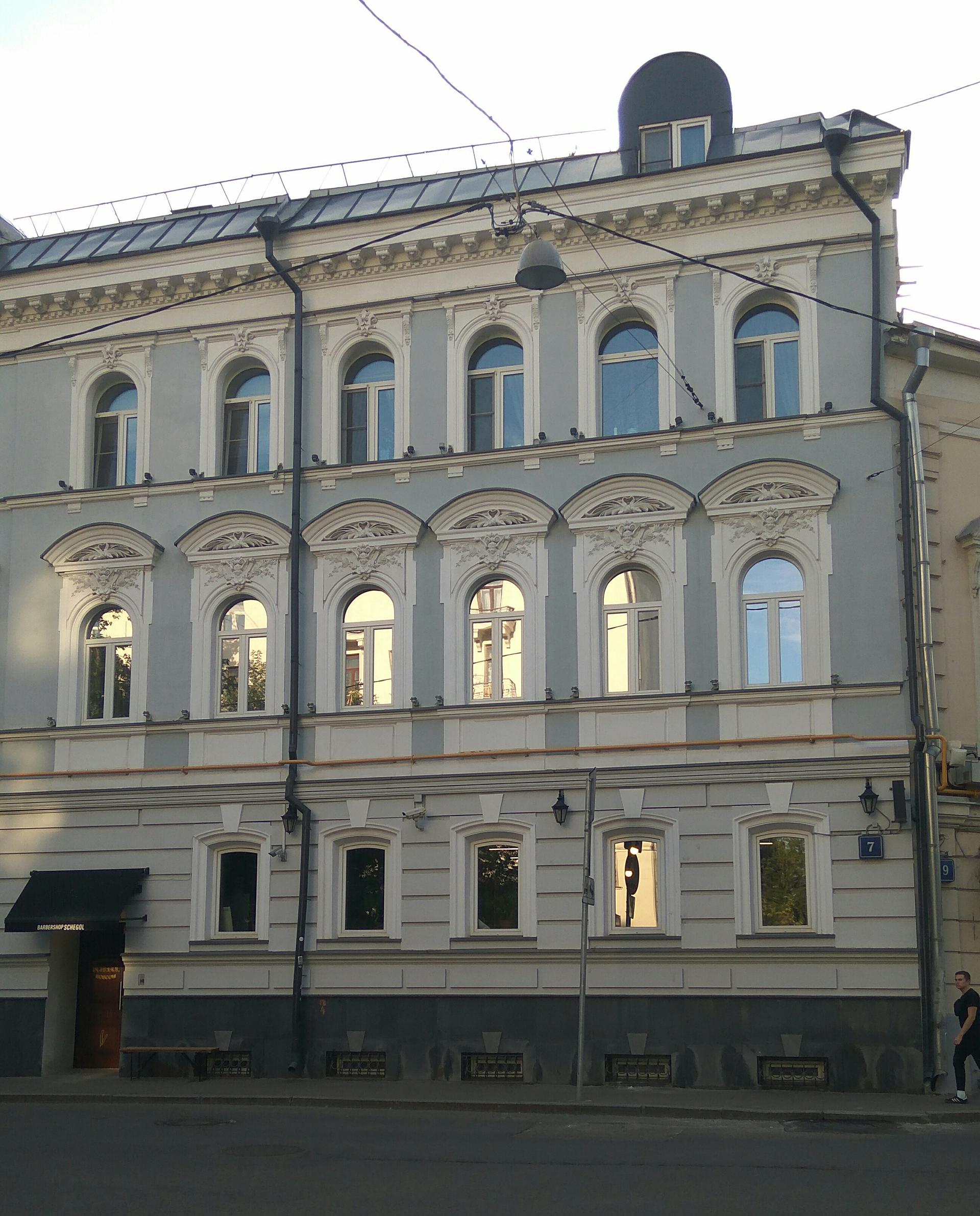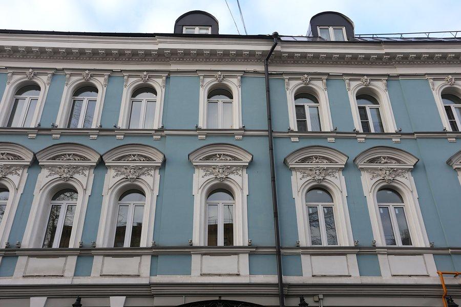 Трехэтажный доходный дом Копейкиных-Серебряковых построен в 1890 году. Эта одна из первых работ архитектора Ивана Гавриловича Кондратенко, много строившего в Москве в начале в стиле эклектики, а затем в стиле модерна. Вот и в этом доме красивая лепнина в наличниках полукруглых окон второго этажа выдержана в стиле эклектики – середину растительного декора украшают женские головки.