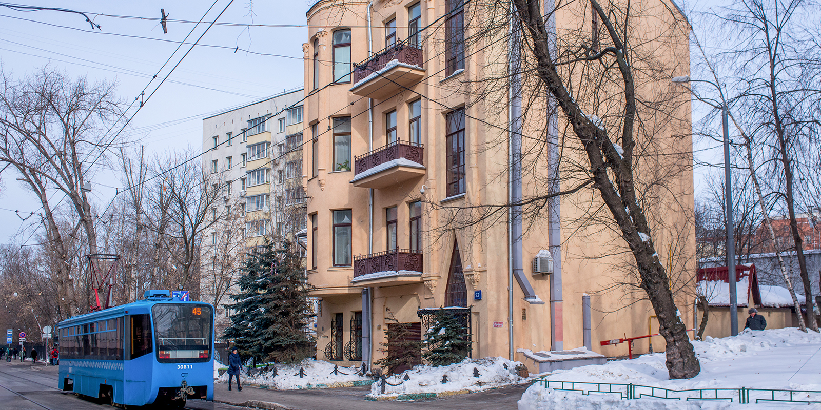 У Фролова был небольшой участок земли, и это обстоятельство продиктовало конструкцию дома. Он получился очень узким, что не характерно для московских доходных домов, а как раз отсылает к европейской архитектуре.