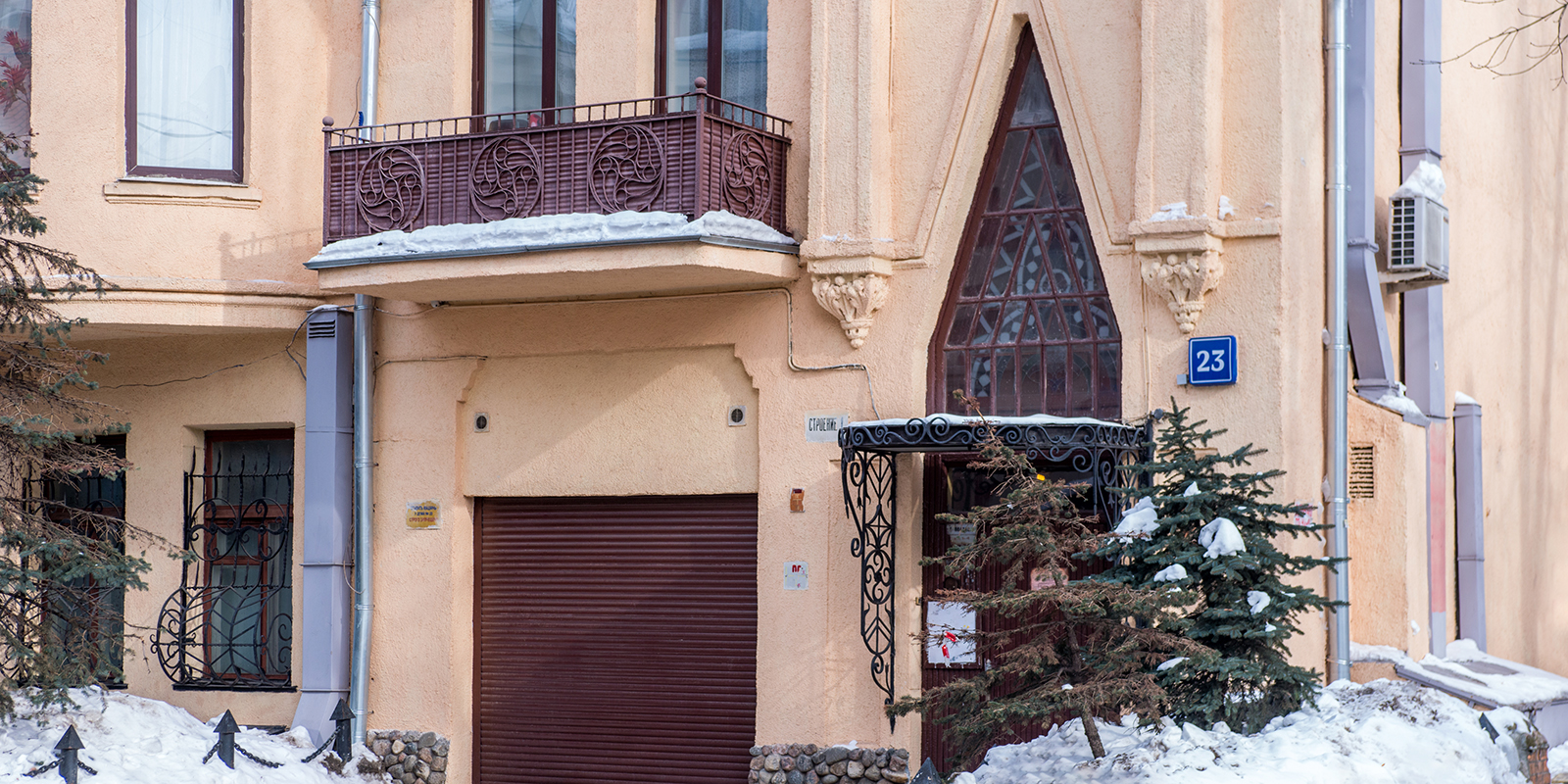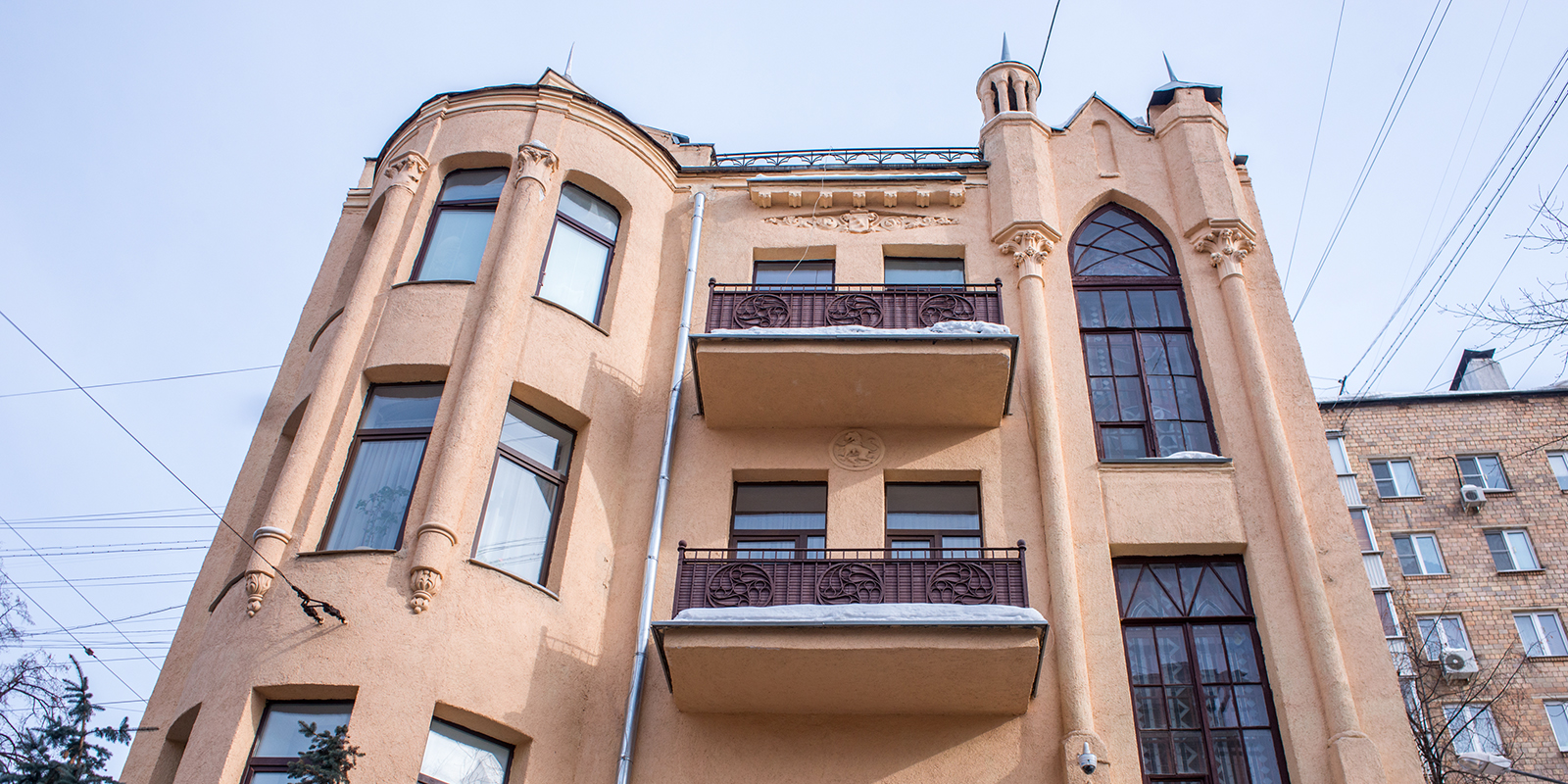 Эта постройка не является архитектурным шедевром, но вообще очень интересна. Во-первых, это доходный дом крестьянина. Как крестьянин мог отгрохать себе четырехэтажный дом в псевдоготическом стиле в центре Москвы?