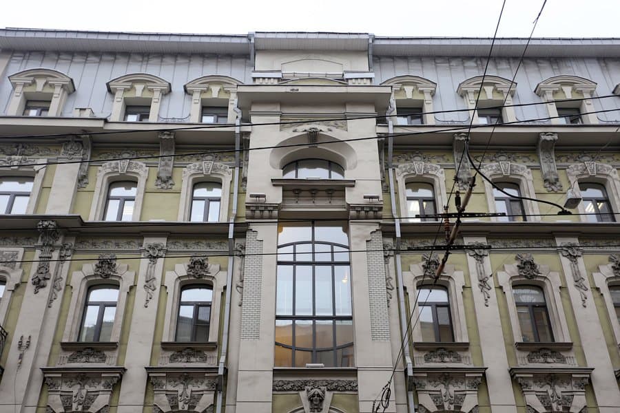 До 1872 года тут был дом провизора Ф.Ф. Штокфиша. Он продал владение котельному заводу Раузера. В 1902 году завод закрыли и продали инженеру Осипу Осиповичу Вильнеру. А он выстроил пятиэтажный доходный дом в стиле венского модерна. Центр фасада акцентирован двумя эркерами, располагающимися на уровне второго-четвертого этажей и украшенными витринными окнами, с аттиками, утопленными в мансардный этаж. По всей ширине второго этажа устроен балкон, огражденный ажурным кованым металлическим ограждением. Лицевая часть здания богато украшена лепниной, и это своеобразная энциклопедия популярной лепнины московского модерна. Наличники каждого жилого этажа решены по-разному. В декоре использованы женские маски нескольких типов, болотные кувшинки, листья каштана, ветвей лавра, рокайльных рамок и луковичных растений.
