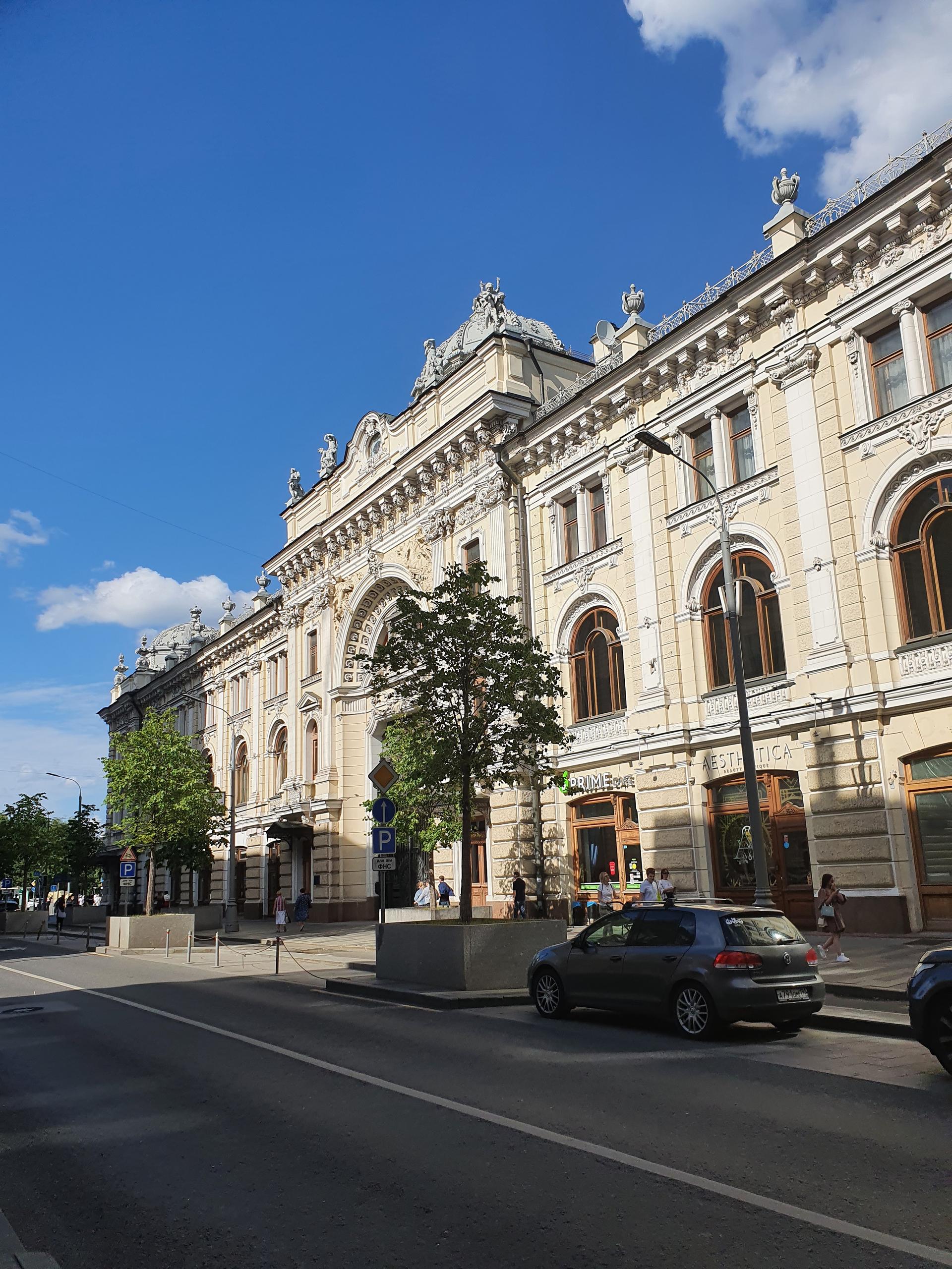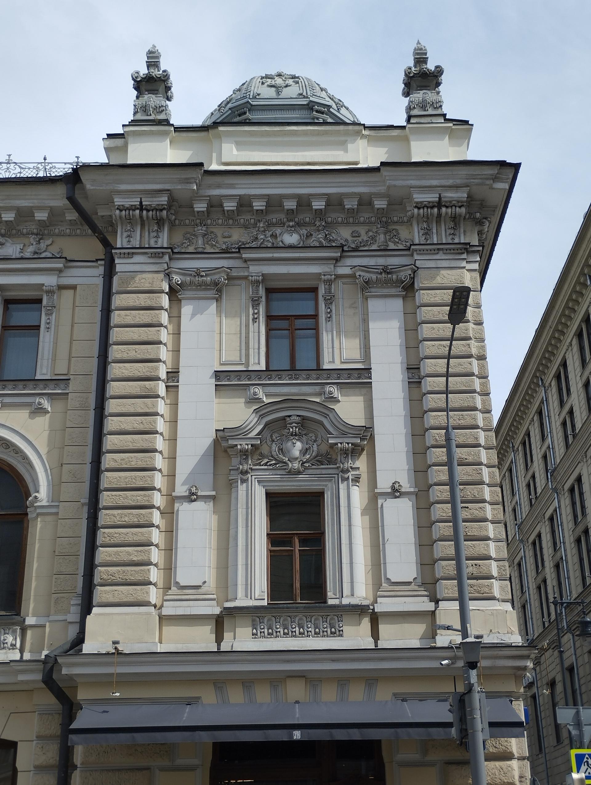 Дом же, расположенный по красной линии Неглинной, между Сандуновским и Звонарским переулками, строился как доходный с жилыми квартирами и помещениями под магазины. Порой его даже называли «Сандуновский пассаж».
