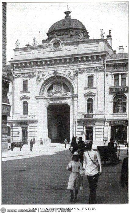 Очень часто дом № 14 по Неглинной улице называют Сандуновскими банями. Подобная подпись встречается и на дореволюционных открытках. Но это не так. Дореволюционной владелицей и доходного дома, и бань была В.И. Фирсанова, строились здания одновременно, в середине 1890-х годов, по проекту одних и тех же архитекторов – Б.В. Фрейденберга и С.М. Калугина. И даже в дворовом корпусе доходного дома располагалось до революции номерное банное отделение. Но все же знаменитые «Сандуны» находятся за зданием, выходящим фасадом на Неглинную улицу, во второй линии домов.