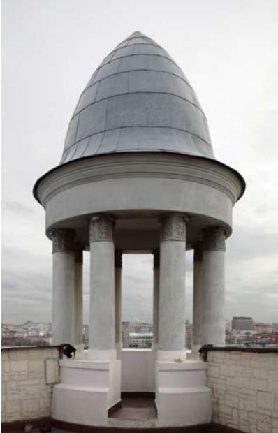 Ограды балконов раньше напоминали продукцию заводов, одним из владельцев которых был Алексей Иванович Шамшин. Он был компаньоном купцов Алексеевых и Вишняковых по новому в России делу — производству кабеля. Как раз незадолго до этого в 1907 г. золотоканительный завод Московского товарищества «Владимир Алексеев» и «П. Вишняков и А. Шамшин» перешел на производство медного проката и кабеля для слабых токов. Электричество прочно входило в жизнь и быт россиян, и спрос на эту продукцию был огромен.