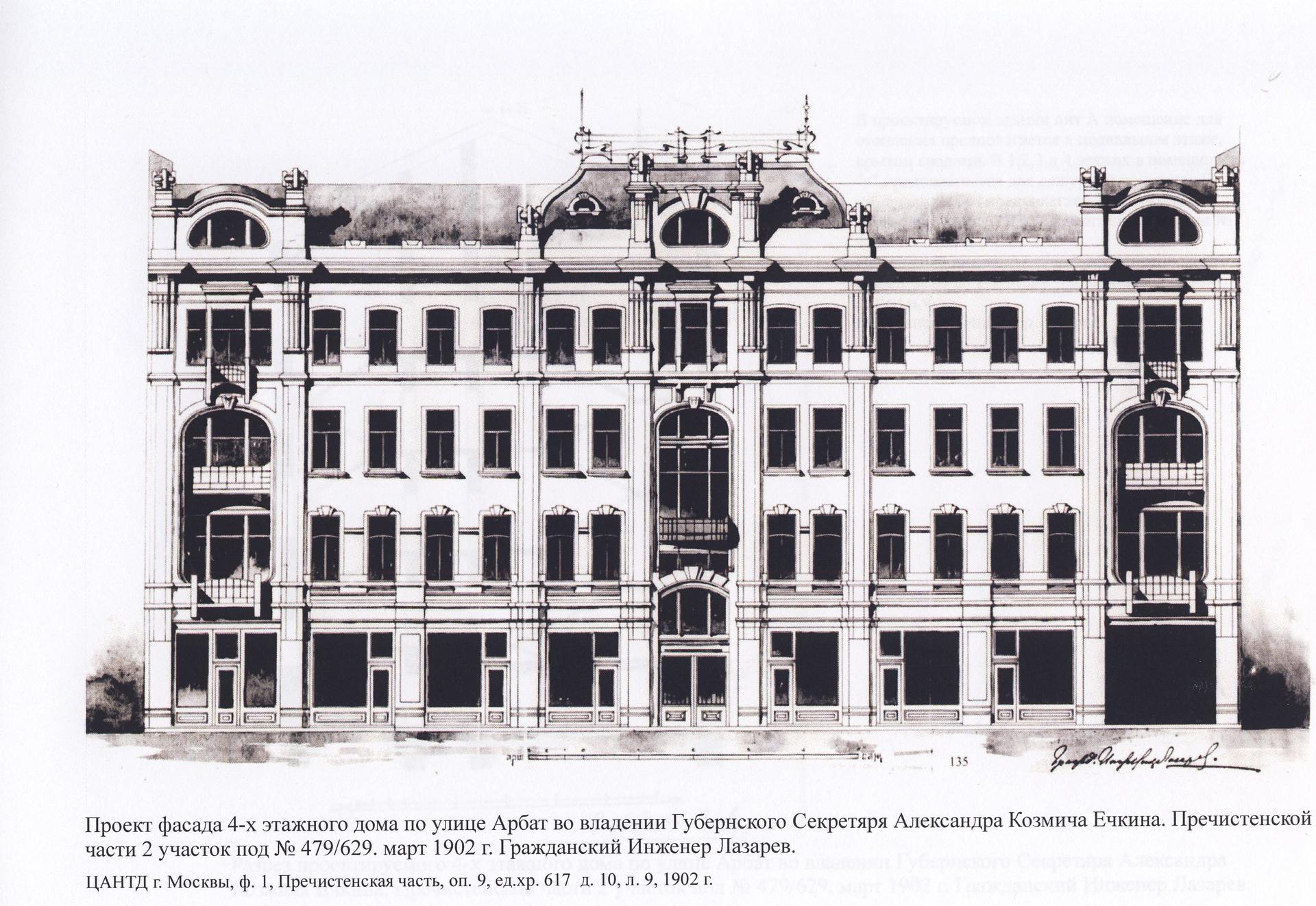 Предприниматель Ечкин выкупил здание в 1902 году и построил на этом месте гостиницу (проект архитектора Лазарева). В доходном доме в разное время жили многие известные личности.