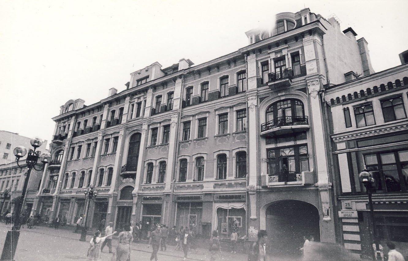 В мансарде располагалась мастерская «русского Родена» Сергея Конёнкова. В 1905 году он участвовал в строительстве баррикады напротив дома, и так вспоминал об этом: «Наша дружина решила забаррикадировать Арбат. Мои товарищи избрали меня начальником дружины. Вооружились ломами и пилами, вышли на улицу. Начали валить на мостовую телеграфные столбы. Нам на помощь пришли и местные жители. Отовсюду тащили и катили старую мебель, бочки, доски, сани, коляски. Все это опутывалось проволокой. Через несколько часов улица стала непроезжей и непрохожей». В мастерской Конёнкова революционеры прятали оружие и гранаты.