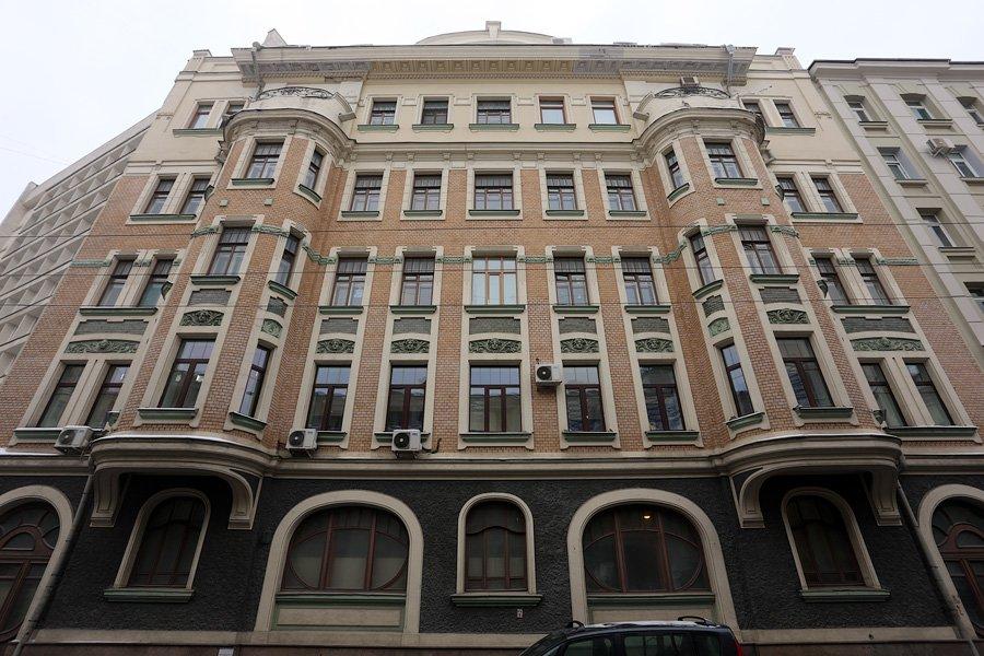 Здание в Кривоарбатском характерно для арбатских переулков эпохи модерна. Многоцветный фасад респектабельного дома облицован несколькими сортами керамической плитки. Все лепные детали выполнены очень качественно и придают фасаду добротность, а фигурные оконные переплеты и пластичные эркеры оживляют его спокойную ритмику.