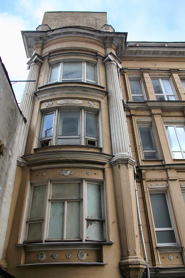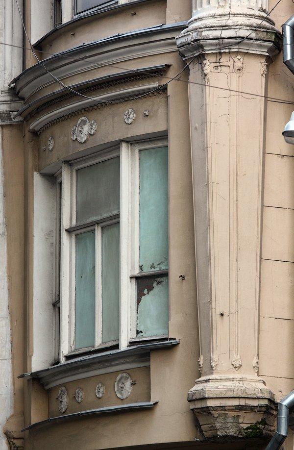 Модерн – не единственный стиль, использованный архитектором при строительстве здания, здесь присутствуют и ноты неоклассицизма. Об этом говорит целый ряд деталей: это и рустовка стен, и каннелированные колонны на эркерах, и расположенные между окнами медальоны.