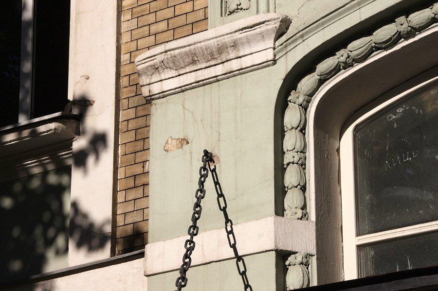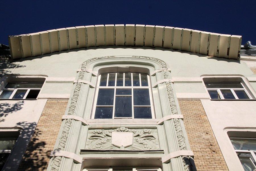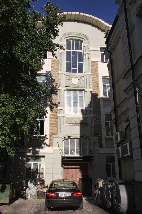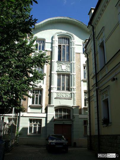 Четырёхэтажный доходный дом Кекушев мастерски вписал в очень неудобный кусок владения. Из-за того, что дом зрители видят частями, он сделан очень цельно. Волнообразный аттик под глубоким козырьком отмечает центр здания. Серая облицовочная плитка стен контрастирует с отштукатуренными поверхностями оконных обрамлений и стен первого этажа с тонким рустом. Одно из главных украшений дома – окно лестничной клетки в центре фасада, обведённое рамкой из нескольких профилей, создающих «перспективные» углубления и перехваченных несколькими горизонтальными тягами-поясками.