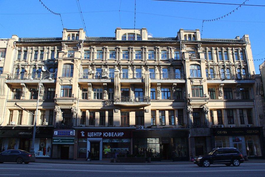 За доходным домом, выходящим на Тверскую своим фасадом, Гиппиус выстроил целый комплекс из четырех доходных домов для Товарищества «А. Бахрушина сыновья» по Козицкому переулку.