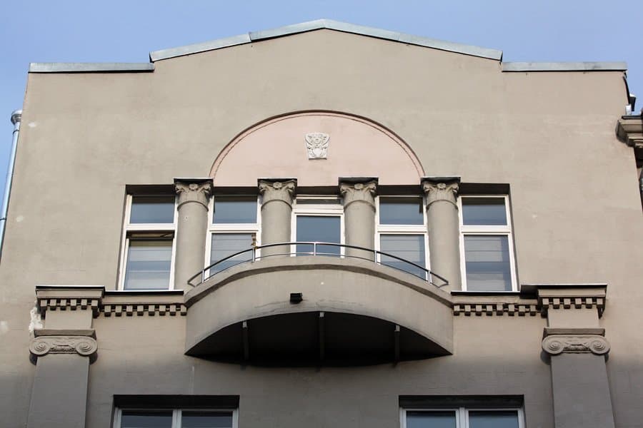Этот доходный дом на Поварской улице построен в 1914 году архитектором О.Г. Пиотровичем для московского домовладельца Ивана Степановича Баскакова. Массивное шестиэтажное здание решено в неоклассическом стиле. Серый фасад и немногочисленные детали лепного декора, стилизованные под московский классицизм, создают основательный вид солидного доходного дома. Два боковых ризалита украшены полукруглыми балконами на последнем этаже поддерживаемые розетками. В центре двухэтажный эркер опирается на легкий балкон, идущий вдоль второго этажа центра фасада. Главный вход оформлен полукруглым эркером портала.