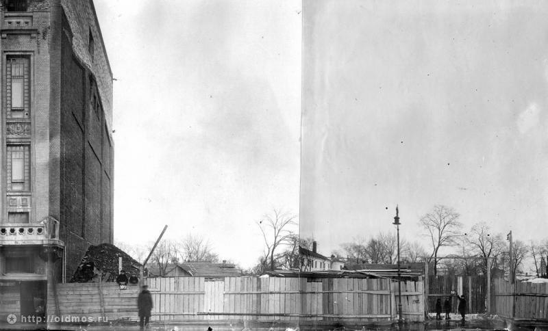 До строительства дома №9/13 это место было занято дровяным складом. Вокруг ровной площадки стоял забор с воротами. Москвичи приходили или приезжали сюда за дровами, но те, кто мог это себе позволить, предпочитали заготавливать дрова на зиму сами и хранили их у себя в дворовых сараях.