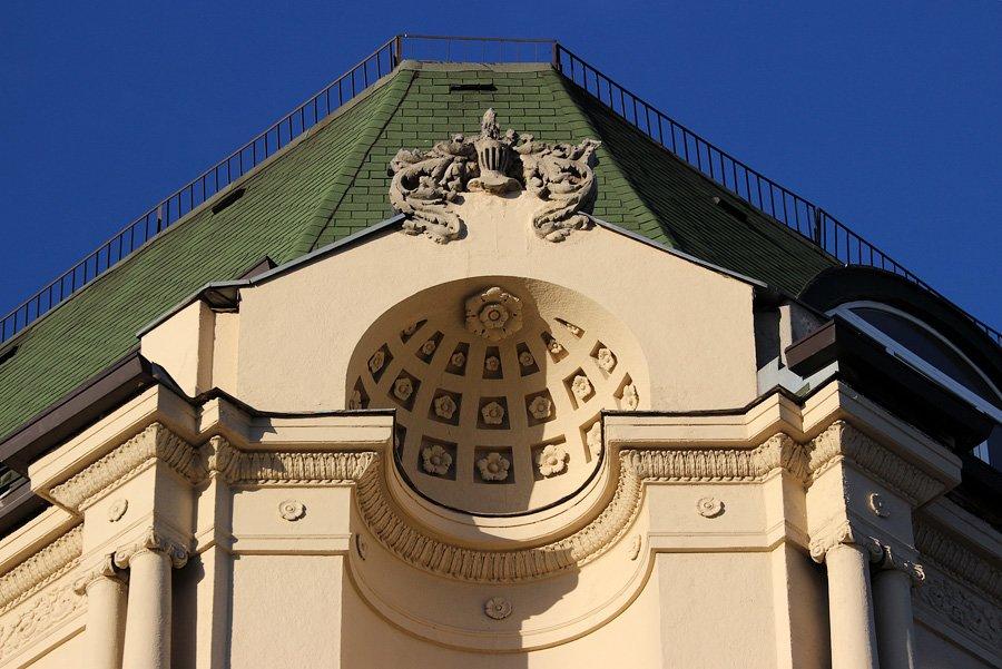 Доходный дом Е.А. Обуховой и князя С.С. Оболенского появился на углу Большой Дмитровки и Камергерского переулка в 1913-м, когда в Москве шло грандиозное строительство доходных домов. Проект дома принадлежал гражданскому инженеру В.А. Величкину, который с 1911 года занимал в Москве пост архитектора Московской конторы императорских театров.