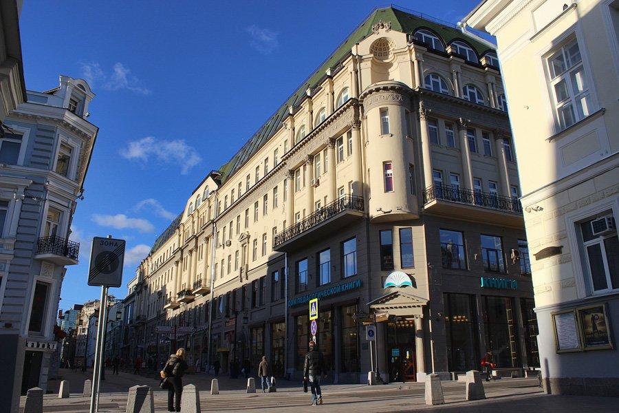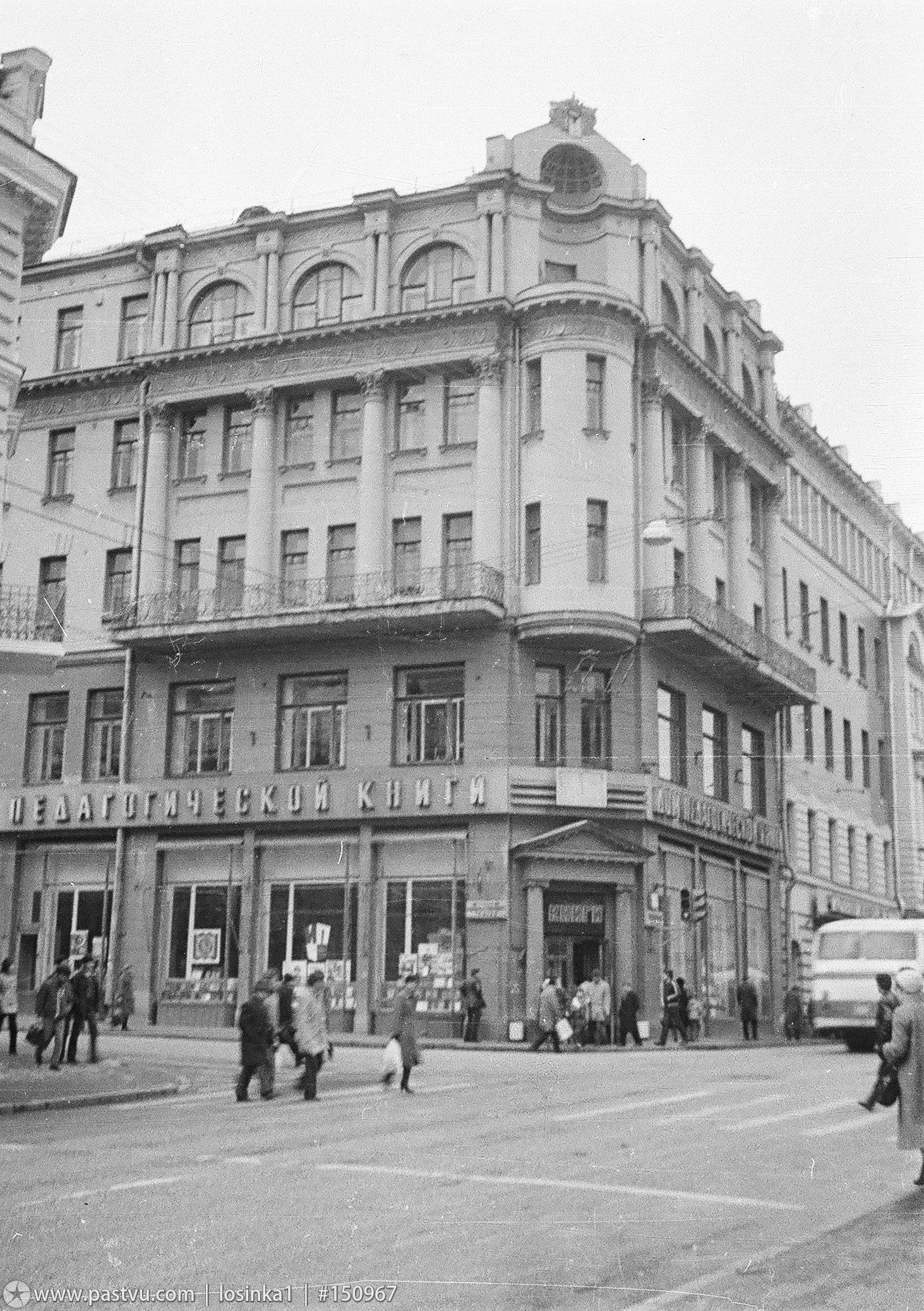 Все, кто учился в советской Москве, знают этот большой дом из темного камня на углу Пушкинской и проезда Художественного театра. Здесь с 1945 года располагался магазин «Педагогическая книга», сюда приезжали за учебниками и контурными картами школьники из разных уголков столицы.