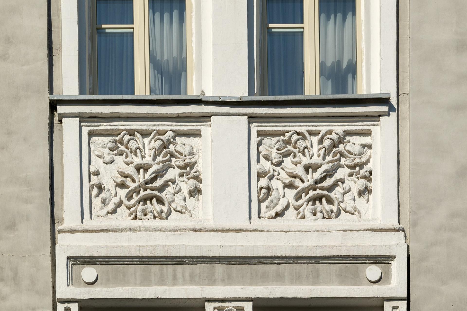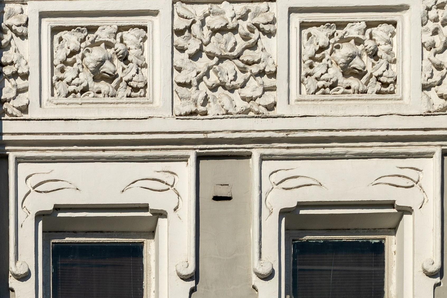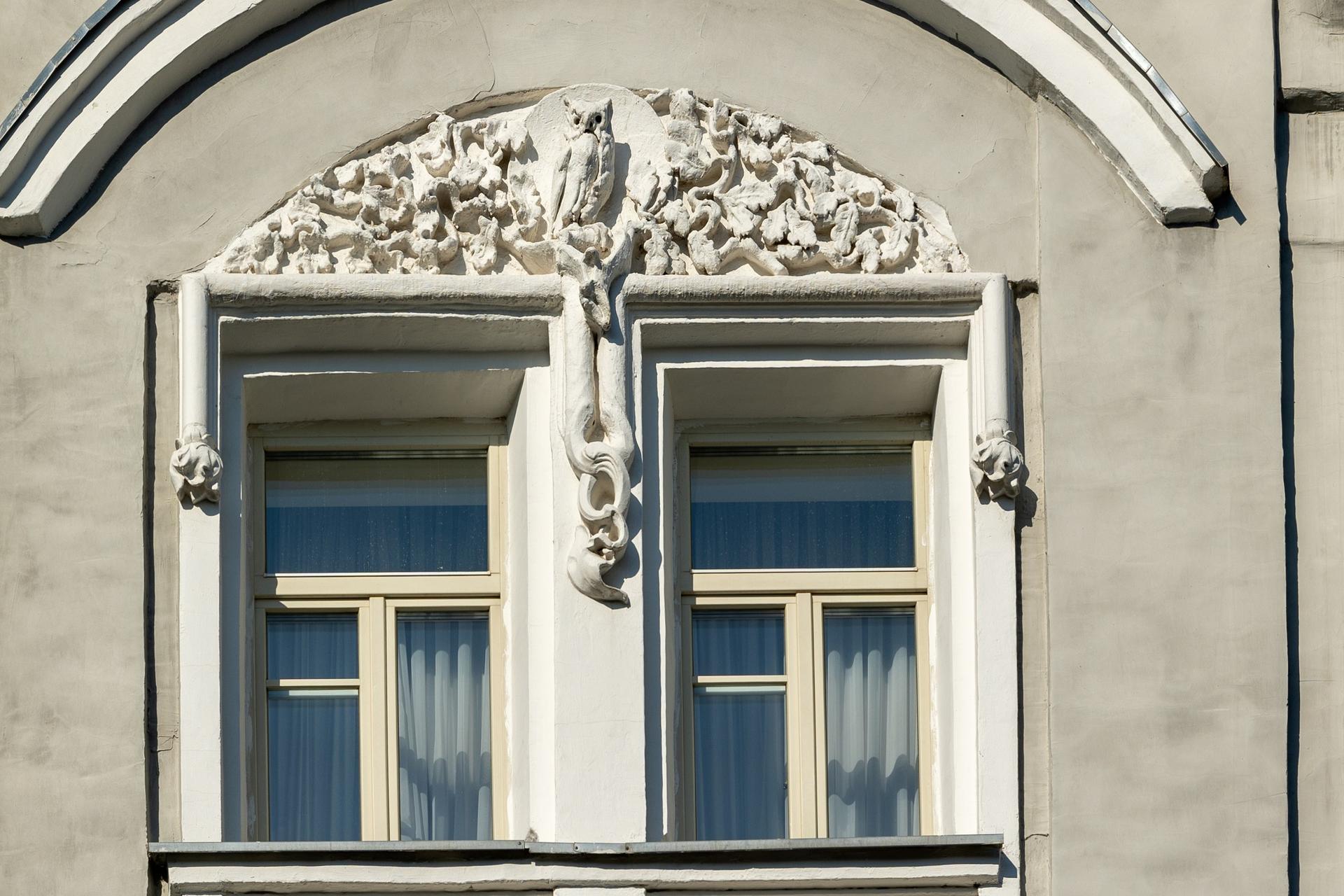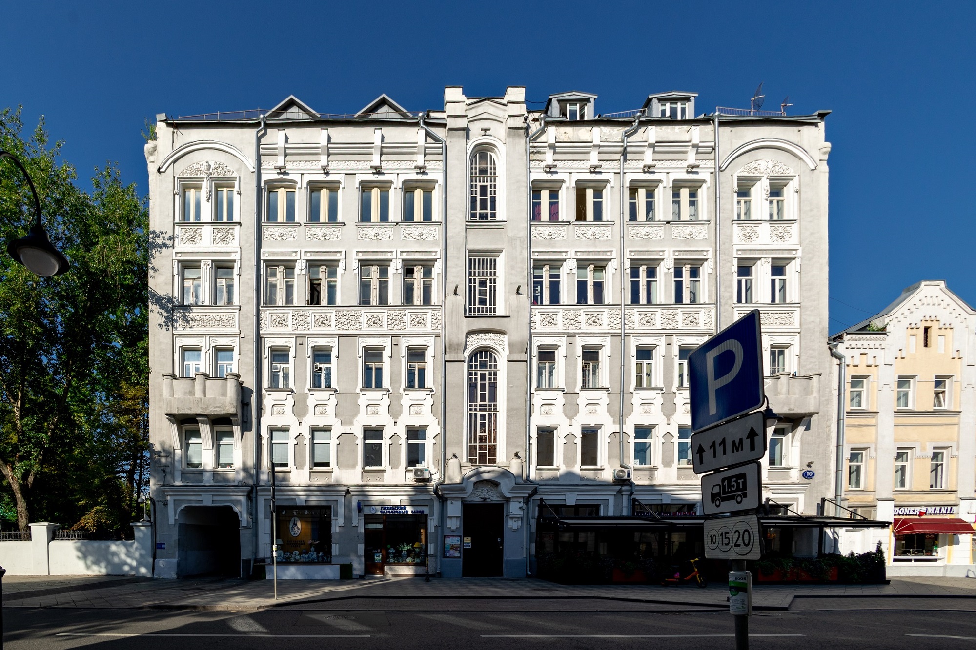 Высокий доходный дом в стиле модерн на чётной стороне Пятницкой улицы, был построен по проекту архитектора А. М. Калмыкова для купца Н. Г. Григорьева в самом конце XIX века. На первом этаже до революции располагался гастрономический магазин знаменитого «колбасного короля», купца 2-й гильдии, потомственного почётного гражданина Николая Григорьевича Григорьева. Обращают на себя внимание два балкона по сторонам здания, сохранившаяся «столярка» высокого, на два этажа, окна над подъездом, барельеф с изображением женской головки с распущенными волосами – Лорелеи, одного из любимых мотивов модерна, богатый лепной растительный орнамент по фасаду. Особенно интересен декор над третьим этажом: с высоты на нас смотрят то ли волки, то ли медведи, а на предпоследнем этаже спряталась настоящая сова.