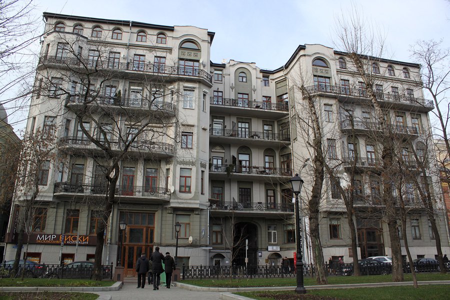 Дом 9 по Тверскому бульвару выделяется из общего ряда домов нечетной стороны. Высокий доходный дом, возвышаясь над деревьями, в то же время не смотрится как громоздкая, массивная постройка. Декоративная простота балконов и эркеров делает дом объемным, но одновременно легким.