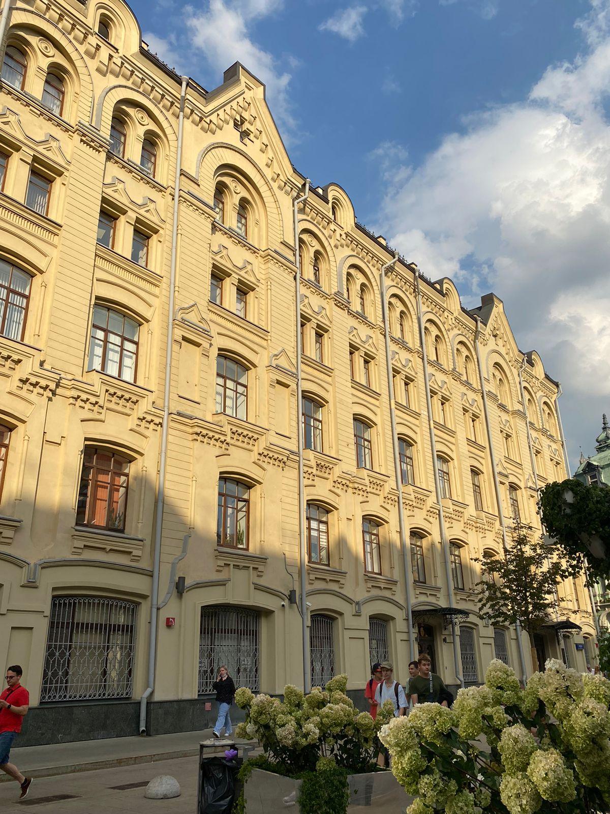 В 1893 году Савва Морозов, знаменитый купец и промышленник, решил купить старую усадьбу Аксаковых на Спиридоновке и построить для своей любимой жены Зинаиды особняк. Молодой архитектор Фёдор Шехтель создал здесь настоящий средневековый замок, сделавший его знаменитым и модным архитектором, к которому выстроилась очередь из богатых заказчиков.