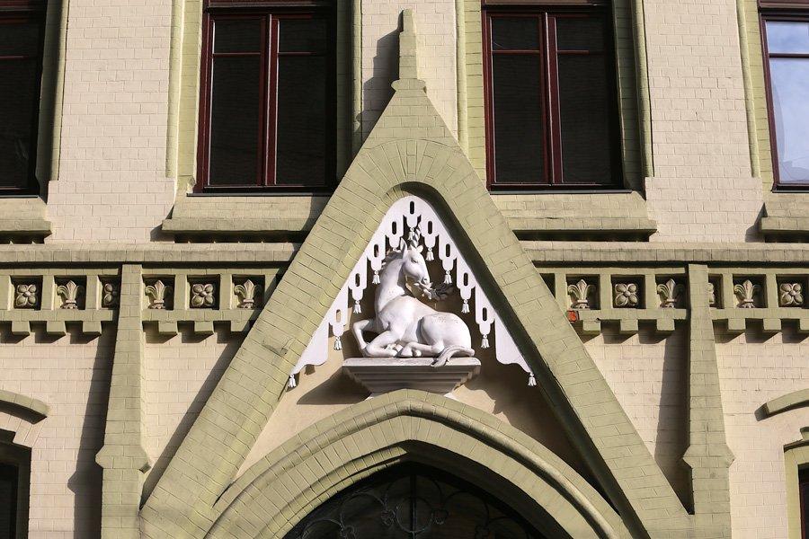 В 2005 г. была проведена реконструкция здания. Особого интереса в ходе этой реставрации заслуживает работа специалистов из Центра историко-градостроительных исследований: они отступили от первоначального вида здания, но зато сумели воссоздать дух готики, разместив на фасаде изображения фантастических существ, в авторском проекте отсутствовавших. Так, на выступающем эркере появилась голова химеры, а над аркой бывшего проходного двора — единорог. Изящные, даже миниатюрные украшения не очень соответствуют авторскому стилю Петра Щекотова (элементы декора он предпочитал крупные), но этому зданию они «пришлись впору». Также в ходе последней реконструкции был надстроен мансардный этаж.