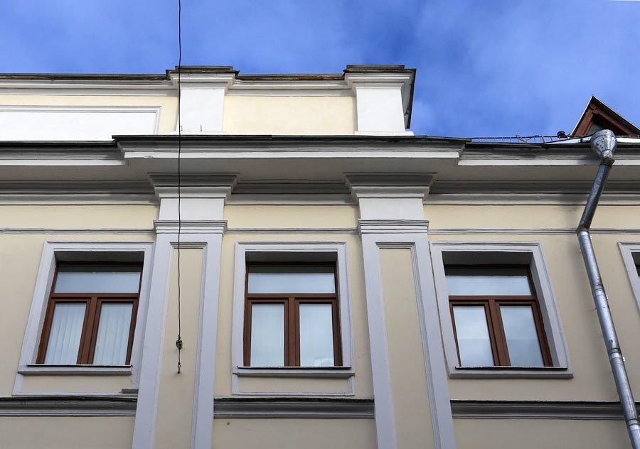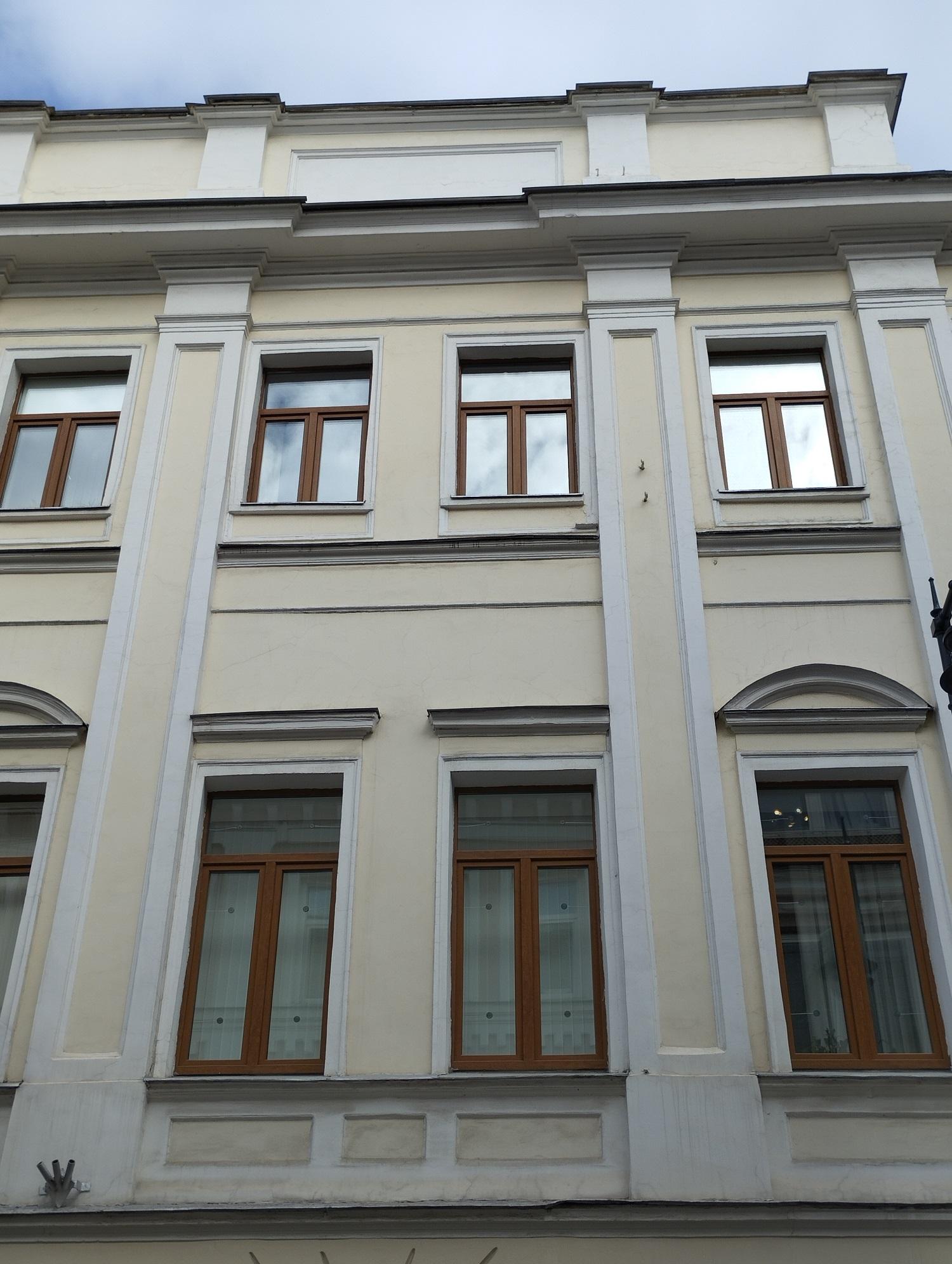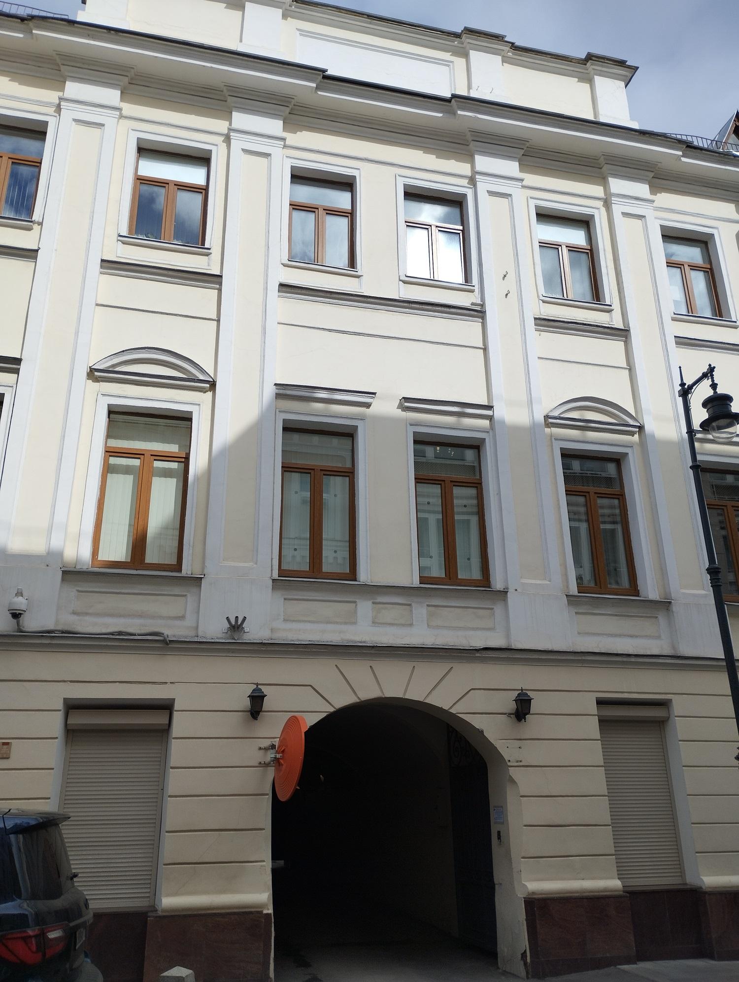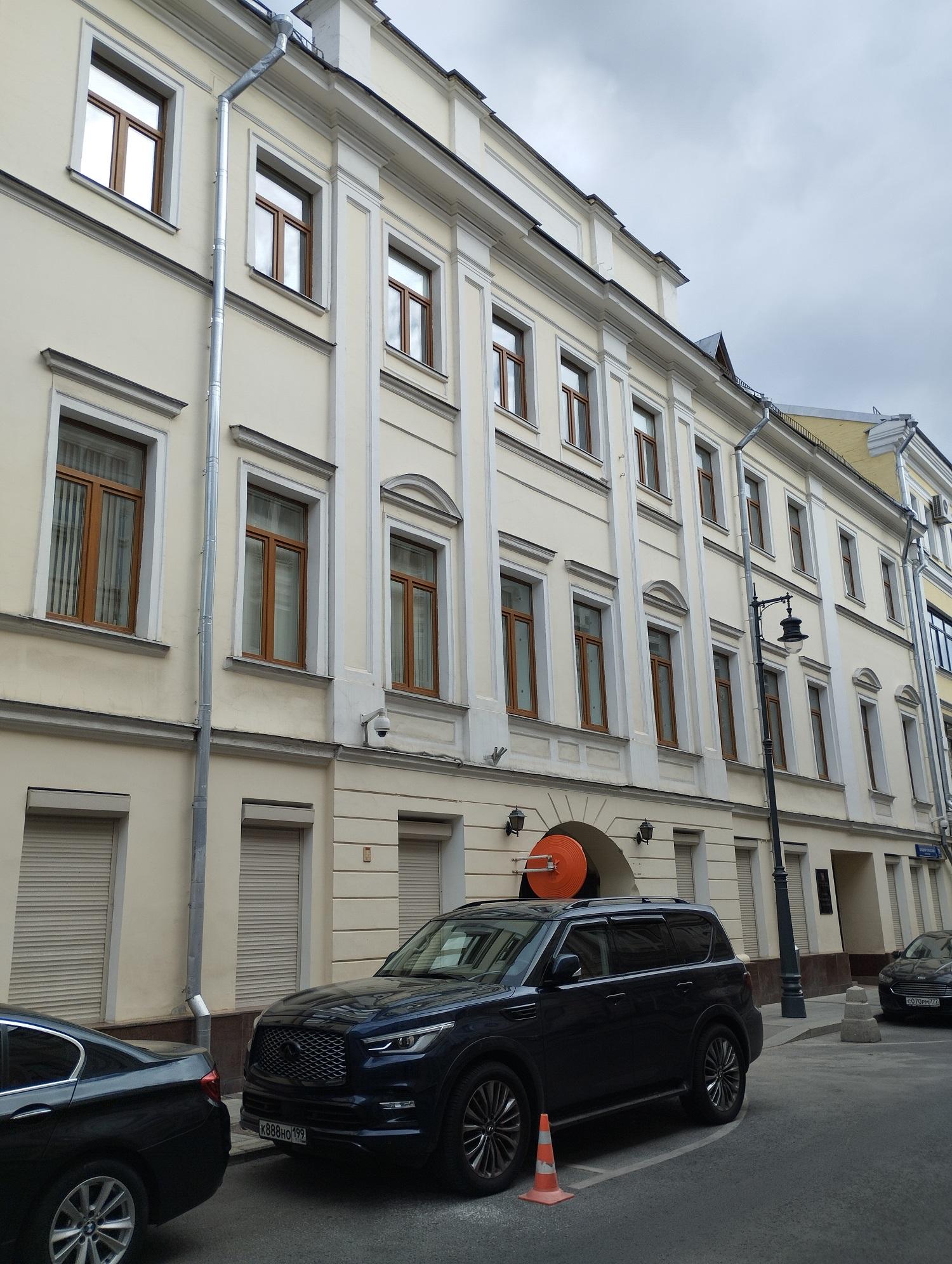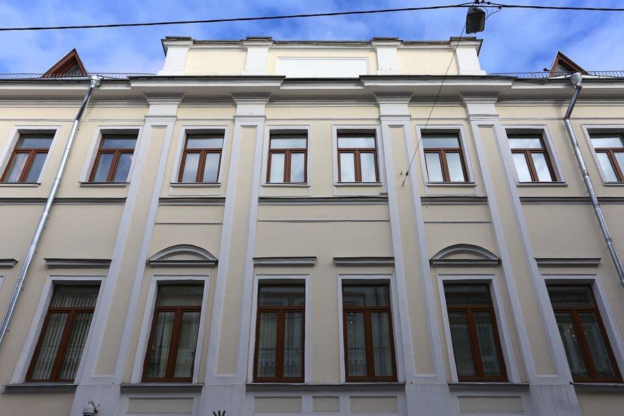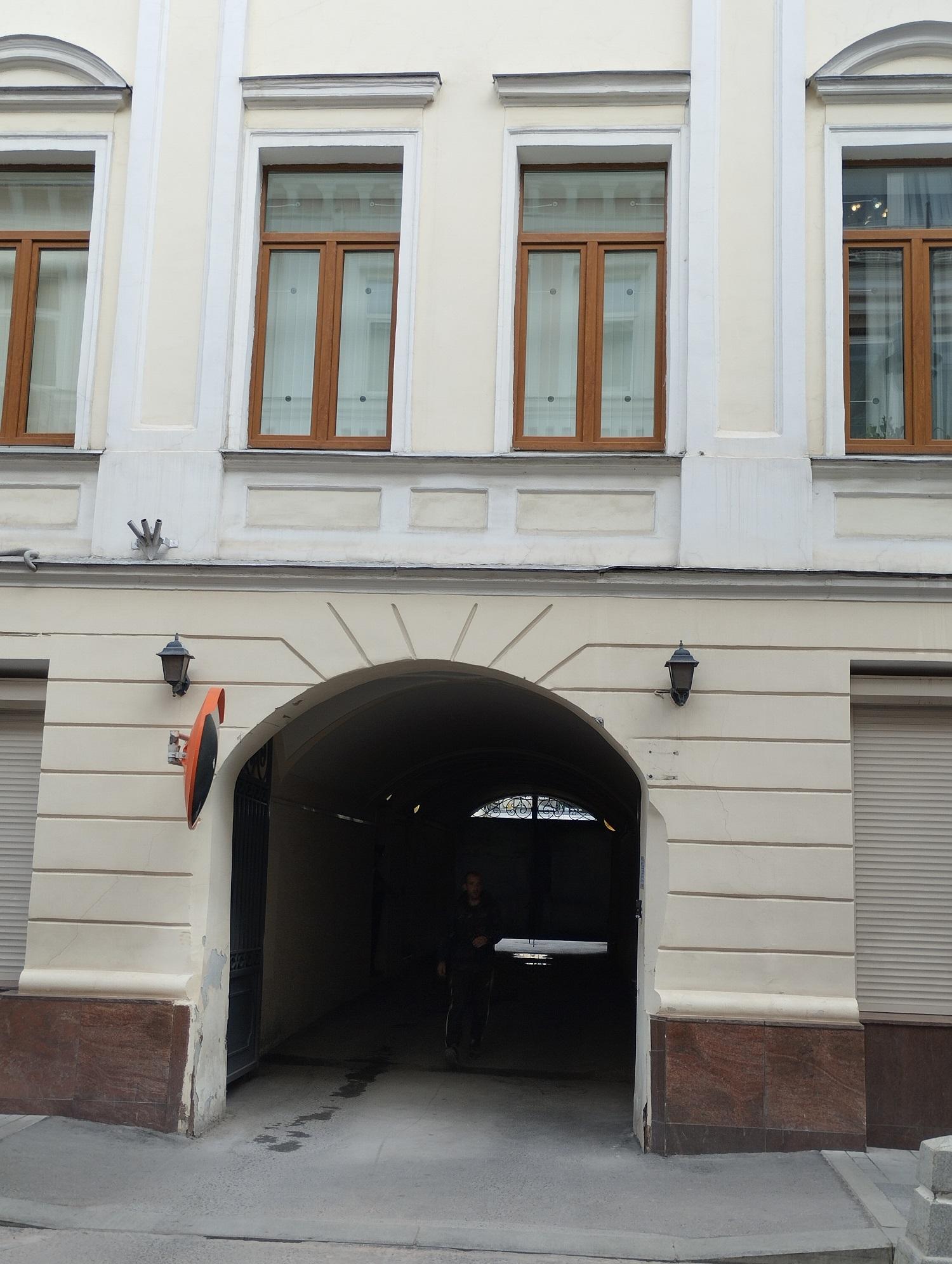 Здание торгового типа было построено тут после пожара 1812 года. Этот участок некогда составлял единое целое с участком № 9 и это был обширный двор князей Черкасских, именем которых и весь переулок получил название Большого Черкасского.