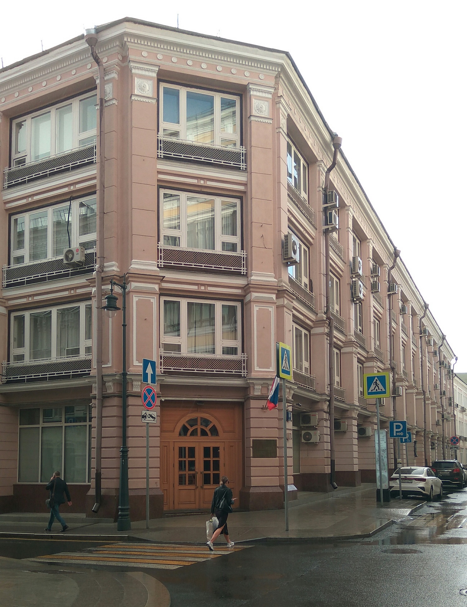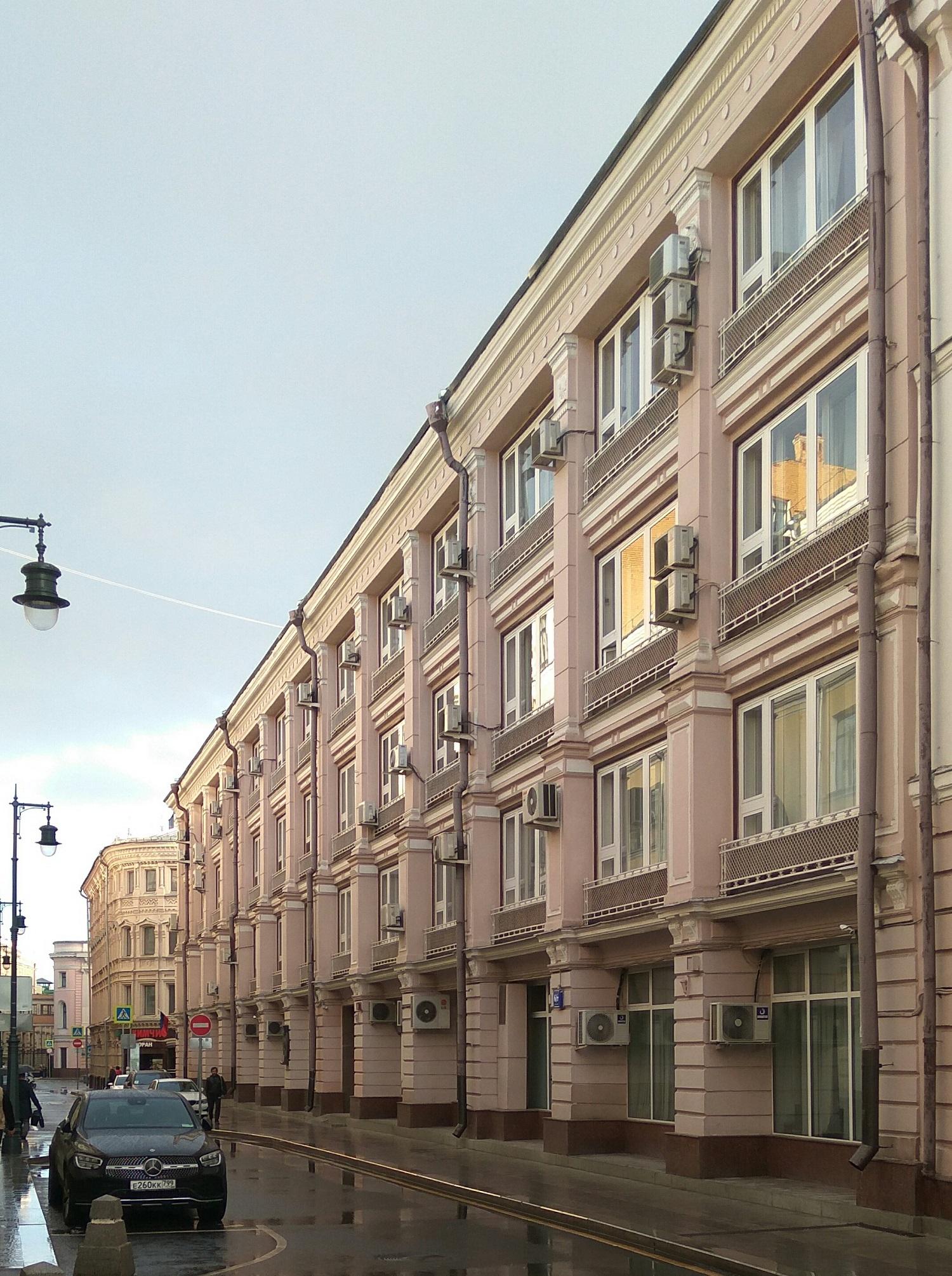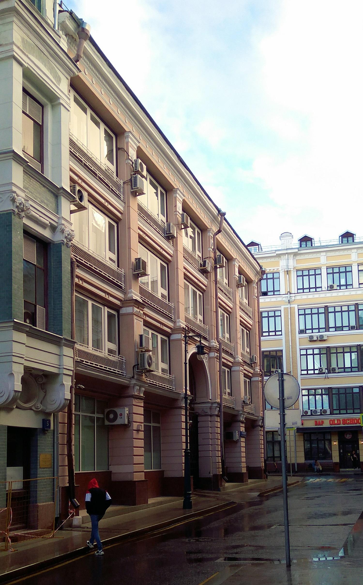 Здание делового двора петербургского купца М.А. Александрова построено в 1898-1899 гг. архитектором А.В. Ивановым на углу Старопанского и Большого Черкасского переулка. Один из самых удачных в Москве образцов строгого делового здания и одно из самых ранних применений приемов функционализма для торгово-офисных помещений. Каркасная структура фасада позволила сделать большие окна, чья монументальность контрастирует с мелким ажурным литьем французских балконов внизу каждого окна. Что украшает довольно скучный и сухой фасад. Благородный и скромный облик здания выгодно отличают его от работы того же времени Ф. О. Шехтеля рядом для ТД «Аршинов и К».