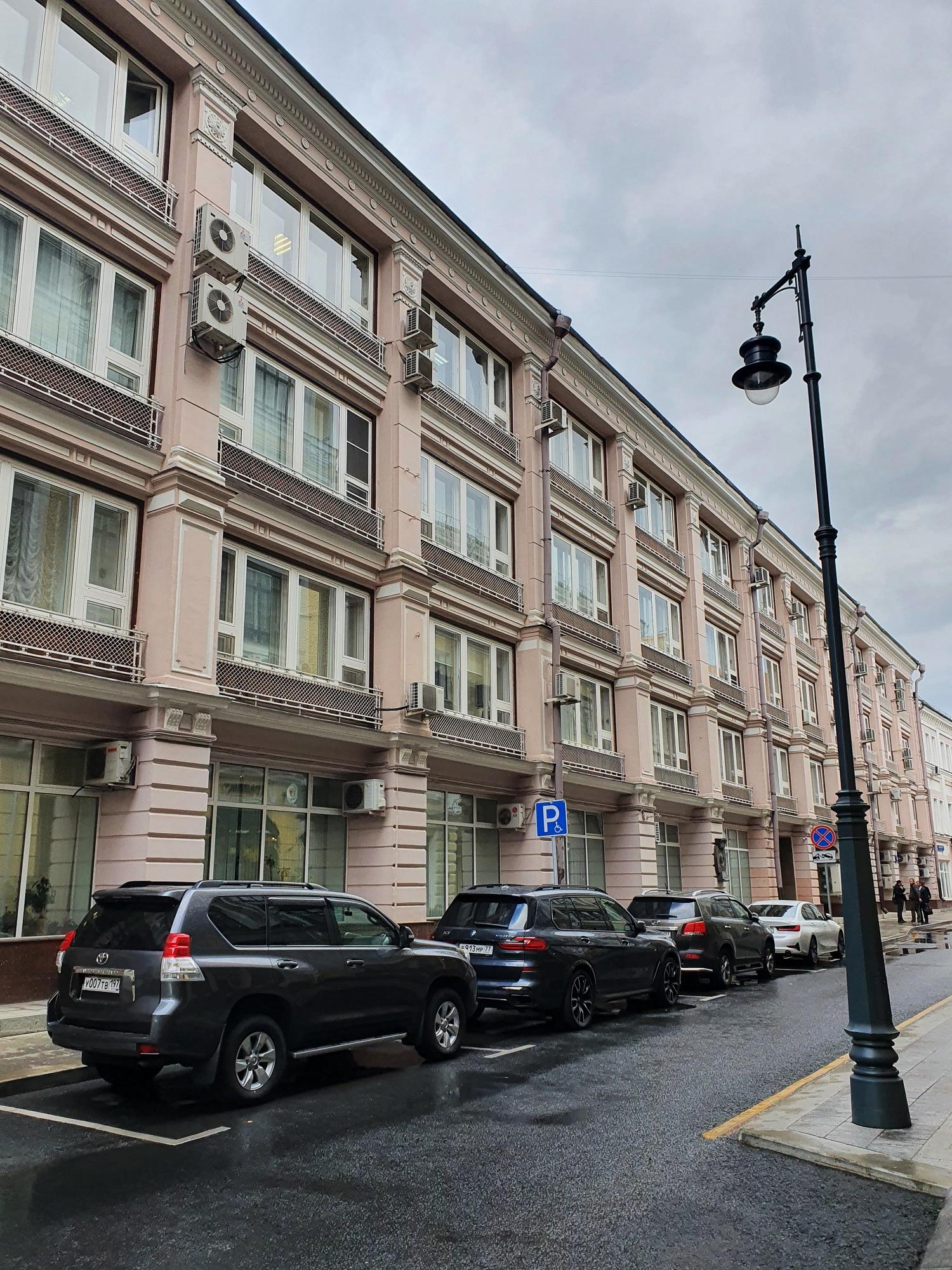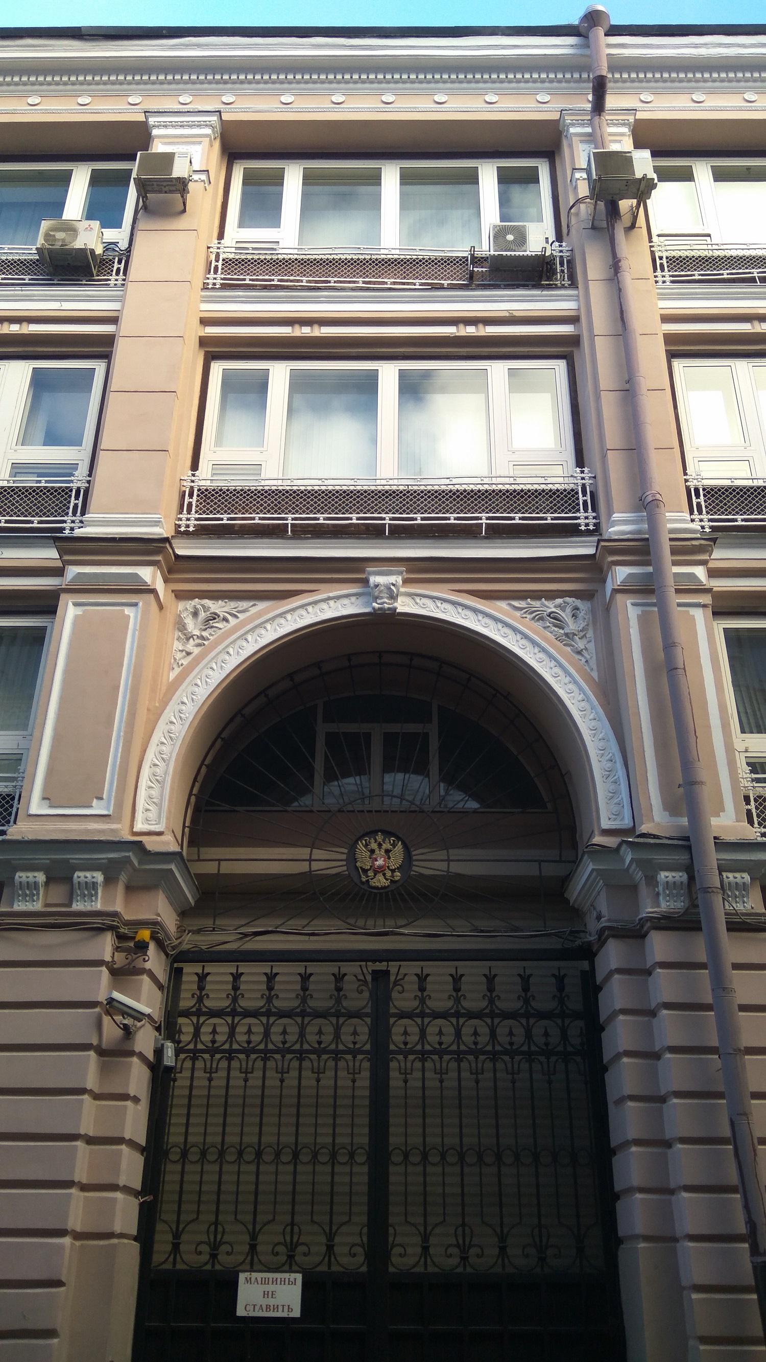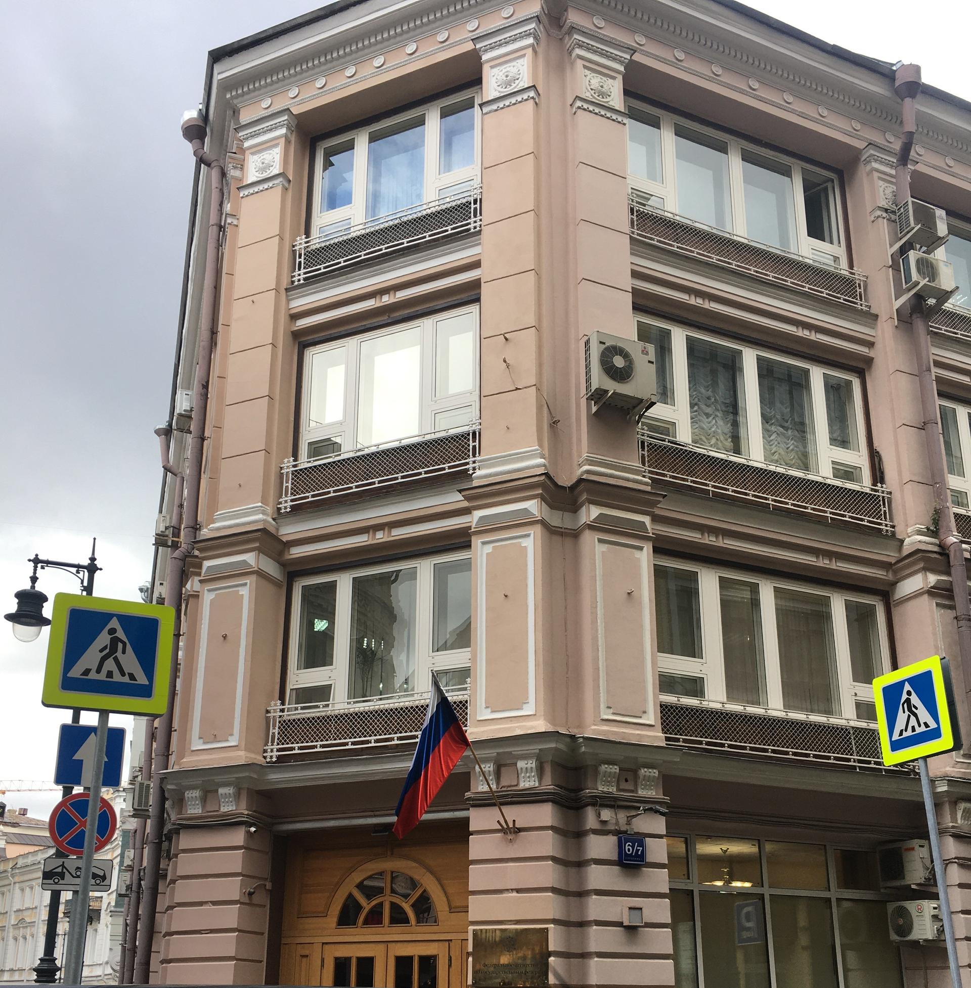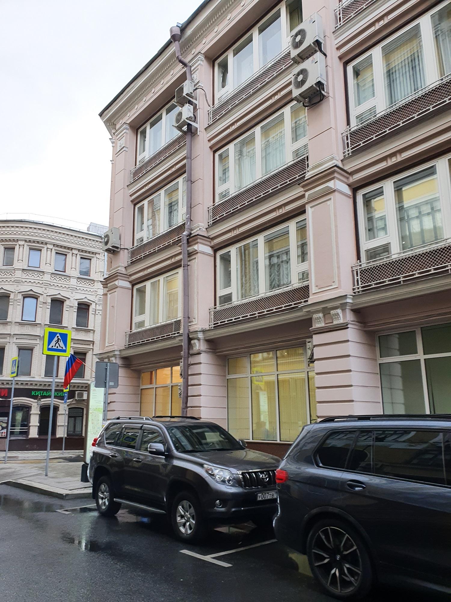 Здание делового двора петербургского купца М.А. Александрова построено в 1898-1899 гг. архитектором А.В. Ивановым на углу Старопанского и Большого Черкасского переулка. Один из самых удачных в Москве образцов строгого делового здания и одно из самых ранних применений приемов функционализма для торгово-офисных помещений. Каркасная структура фасада позволила сделать большие окна, чья монументальность контрастирует с мелким ажурным литьем французских балконов внизу каждого окна. Что украшает довольно скучный и сухой фасад. Благородный и скромный облик здания выгодно отличают его от работы того же времени Ф. О. Шехтеля рядом для ТД «Аршинов и К».