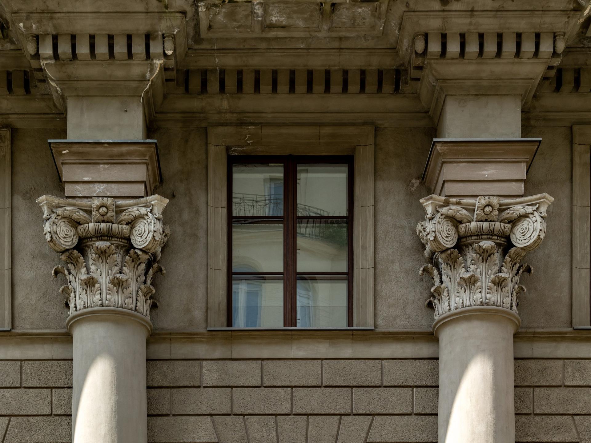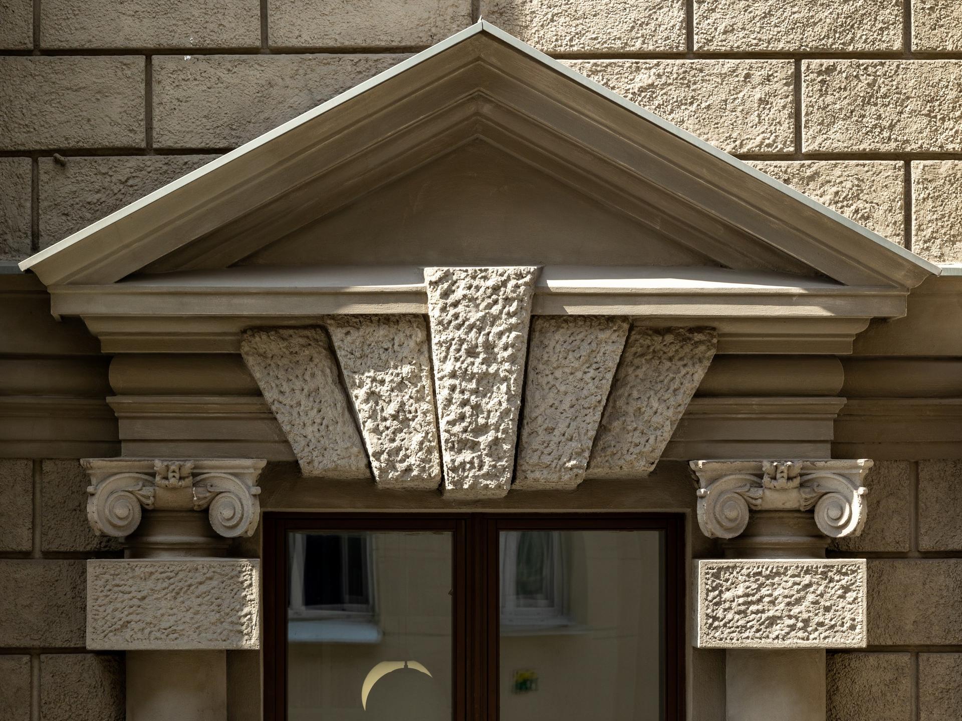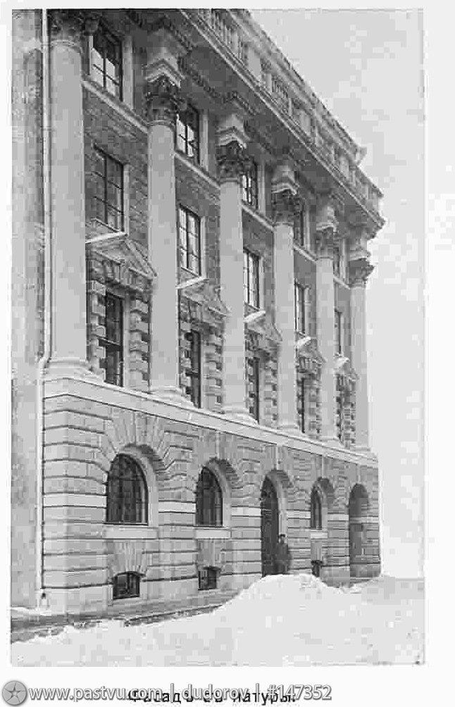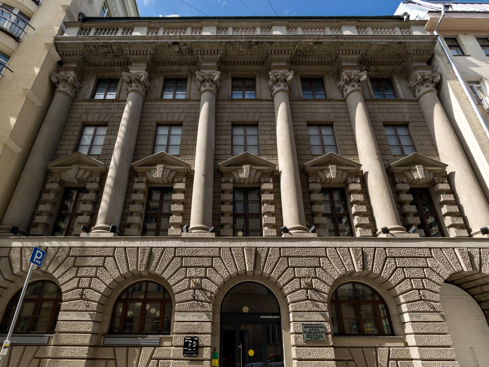 Впечатляющее неоклассическое здание в Ермолаевском переулке было построено в 1912-1915 гг. архитектором Д. С. Марковым и представляло собой доходный дом и клуб Московского архитектурного общества.