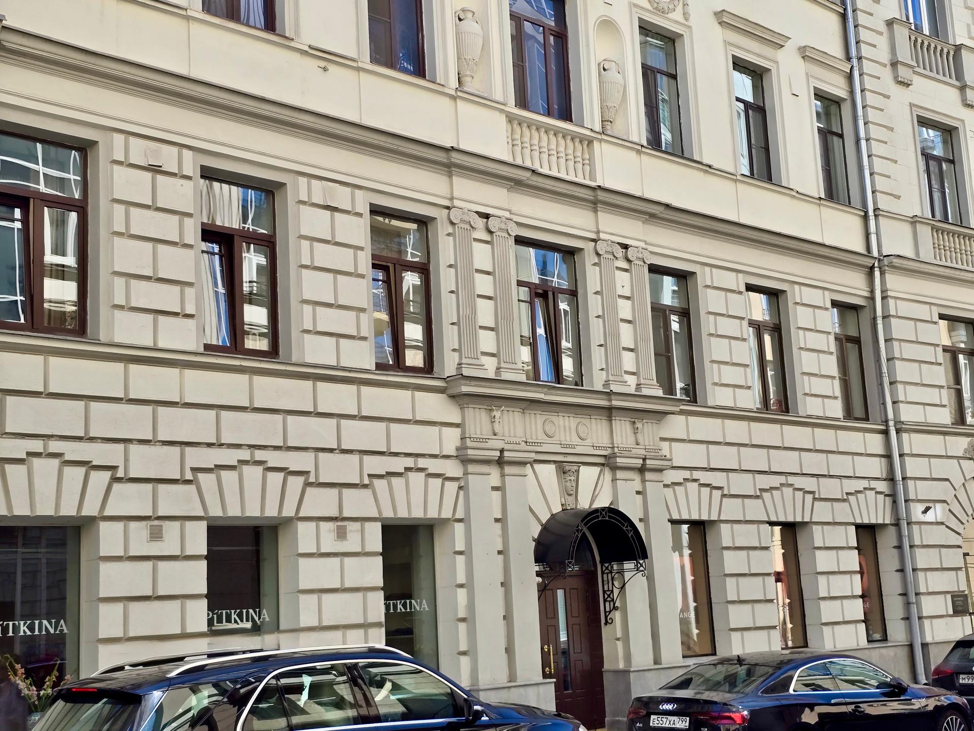 В Малом Козихинском переулке, топографически напоминающем о древнем урочище Козье болото, обращает на себя внимание дом № 12. Большой многоквартирный доходный дом с двумя первыми рустованными этажами был построен по проекту архитектора В.Д. Глазова.