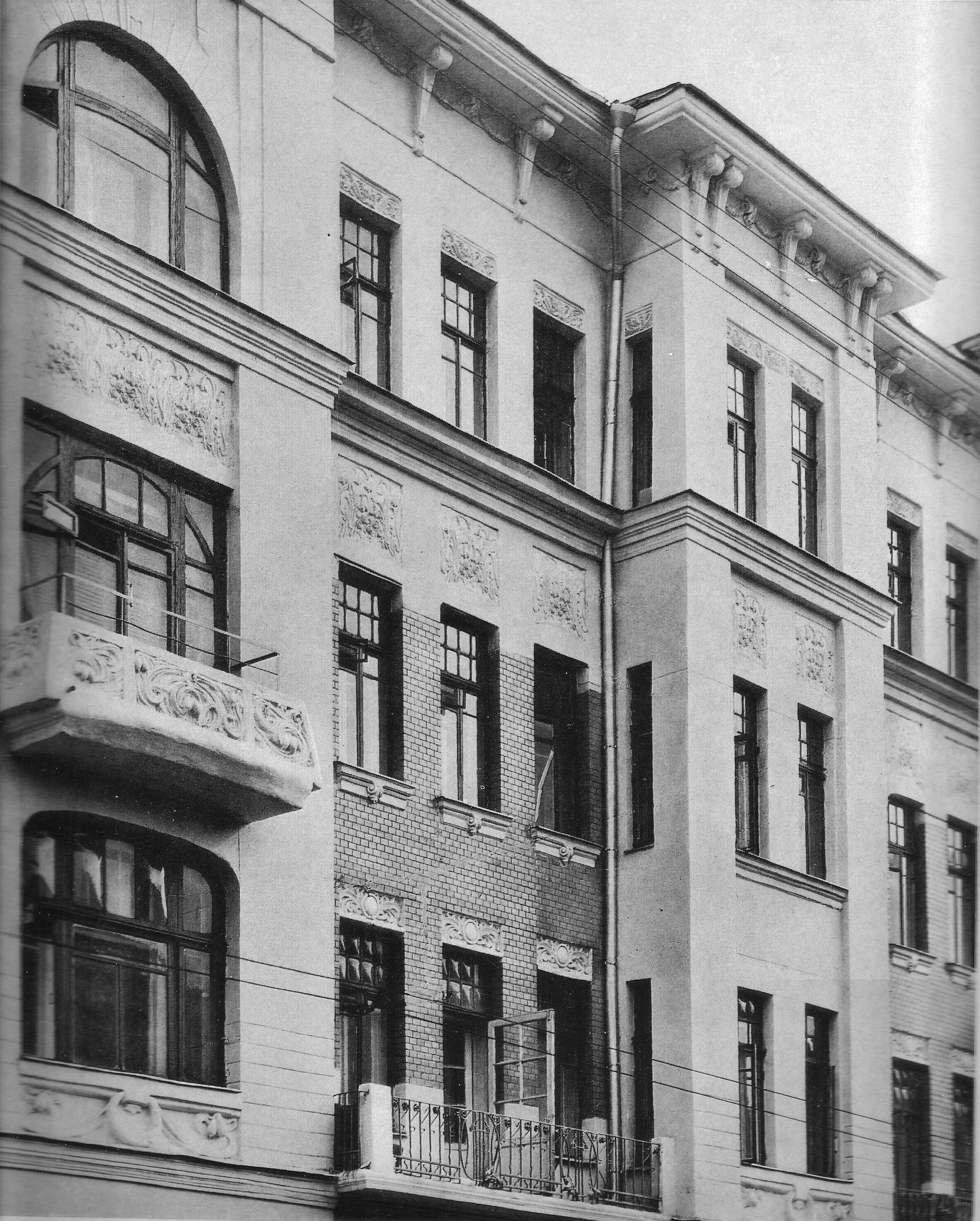 Часть своего декора дом потерял в середине 20-х гг. Его фасад упростился и стал ближе к неоклассике с элементами модерна, чем к чистому стилю модерн. Большие квартиры сделали коммунальными, а на первом этаже всегда находились магазины.