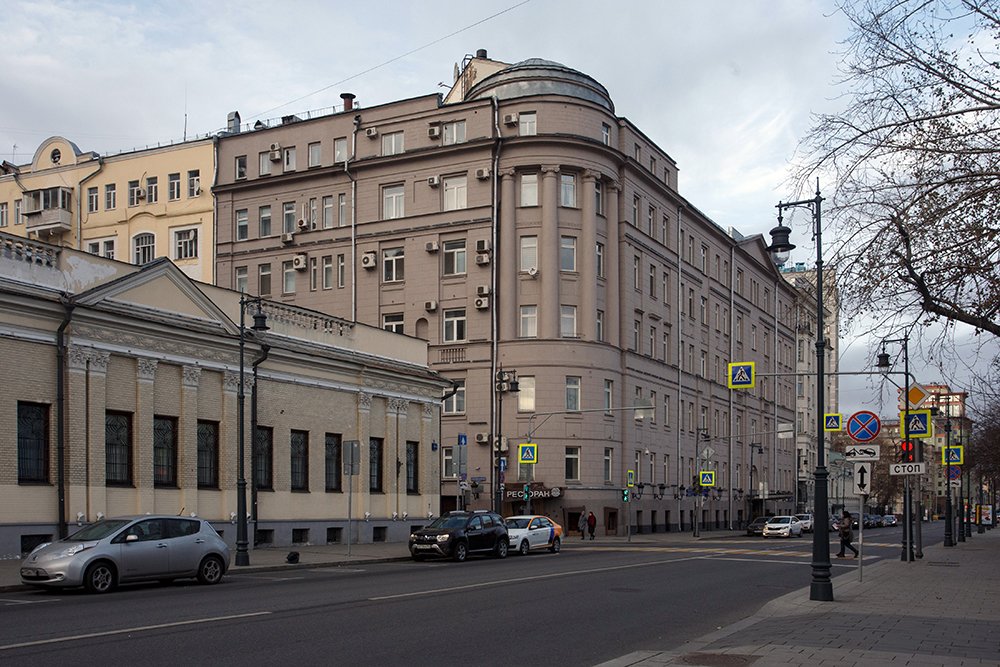 Утрачены два эркера – один со стороны Малой Дмитровки, над дверью парадного подъезда; другой – на фасаде по Старопименовскому переулку. Их места легко найти по тройным окнам верхних этажей и разрыву в карнизах. Надстройка угловой части появилась в конце 1930-х гг.