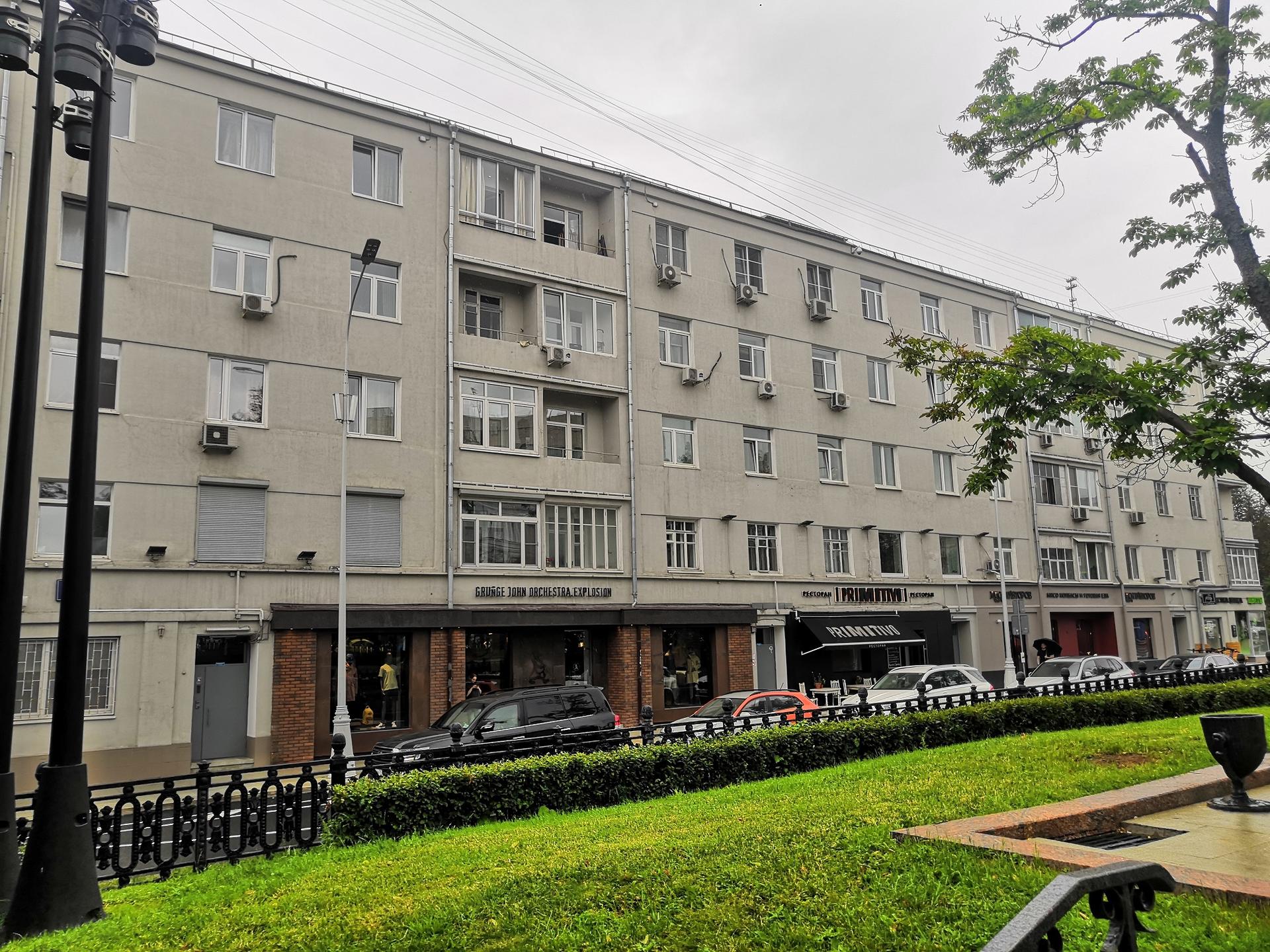 Этот дом был одним из первых советских кооперативов, построенный на месте колокольни и двора церкви Федора Студита.