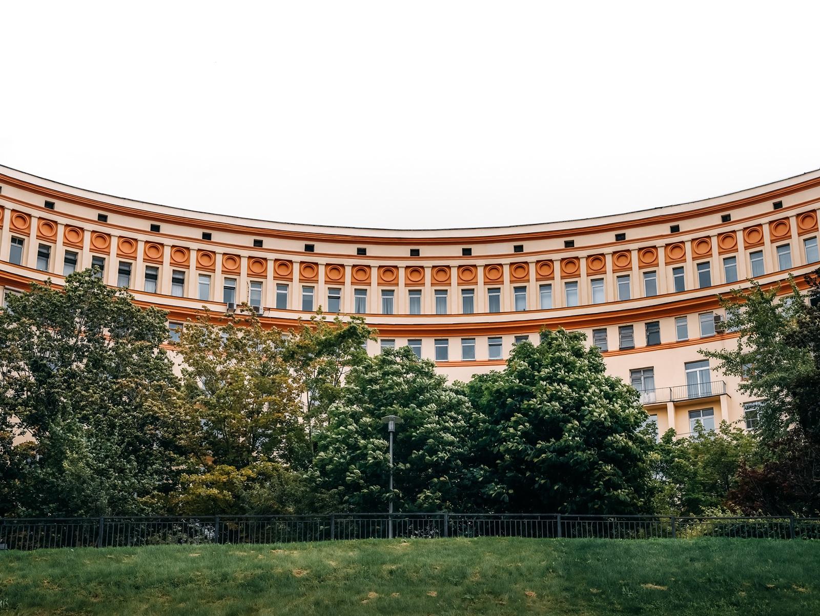 Жилой дом кооператива «Советский архитектор» на Ростовской набережной, 5 — единственное воплощённое звено парадного ансамбля, задуманного А. В. Щусевым в 1934–1938 годах для Смоленской и Ростовской набережных. Полуциркульный четырнадцатиэтажный объём, обращённый раскрытым двором к Москве-реке, изначально должен был стать частью непрерывной линии восьми- и девятиэтажных домов, в силуетах которых высоту локально усиливали бы башни; однако из всего замысла возведено лишь это здание, сразу ставшее выразительной вертикальной доминантой панорамы реки напротив площади Киевского вокзала.