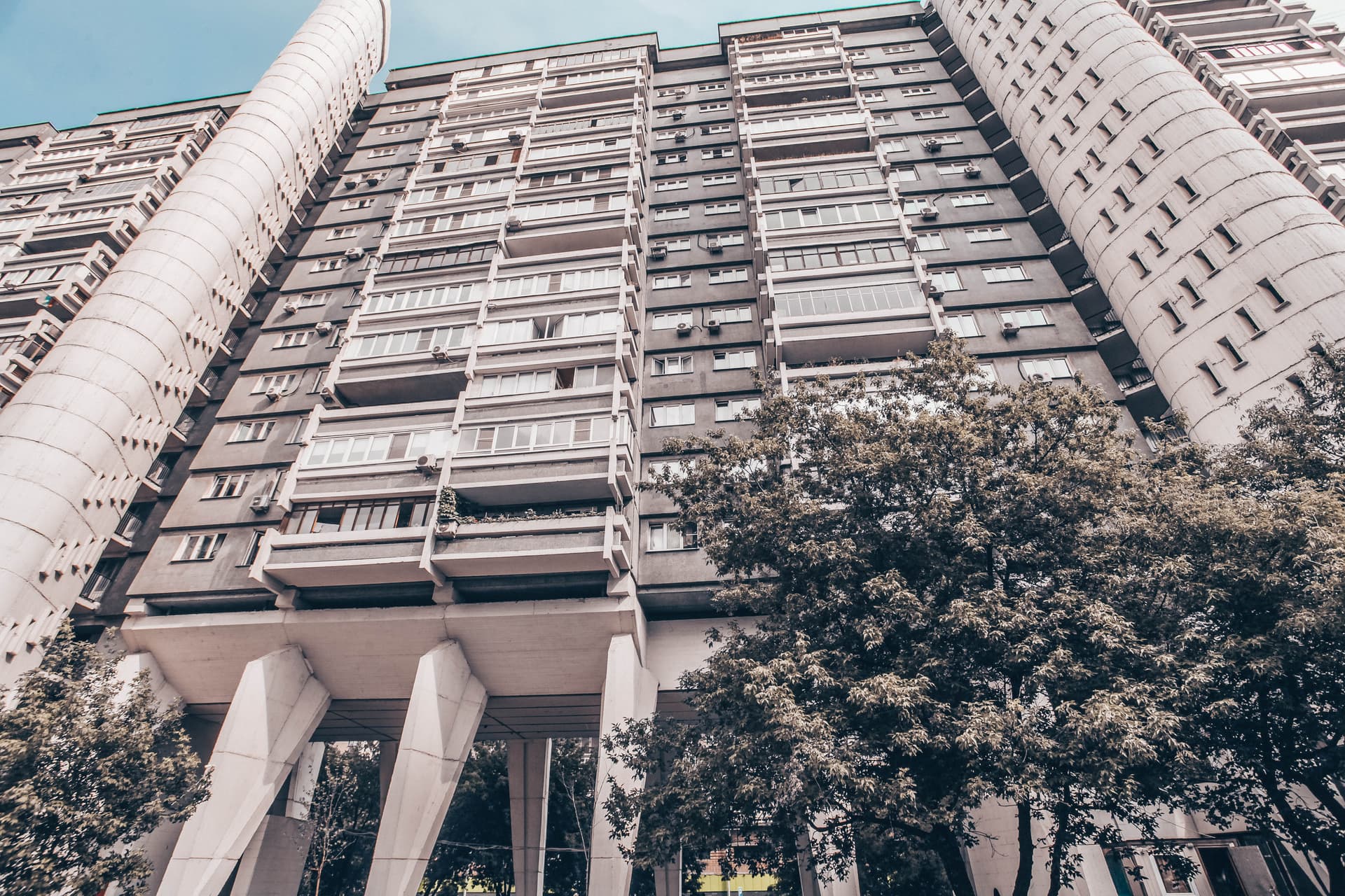 Этот жилой панельный дом высотой в 13 этажей воздвигнут в 1978 году архитекторами Андреевым и Заикиным по проекту Меерсона в стиле брутализма. В народе здание называют как «Дом-сороконожка», «Дом-осьминог» или «Избушка на курьих ножках».