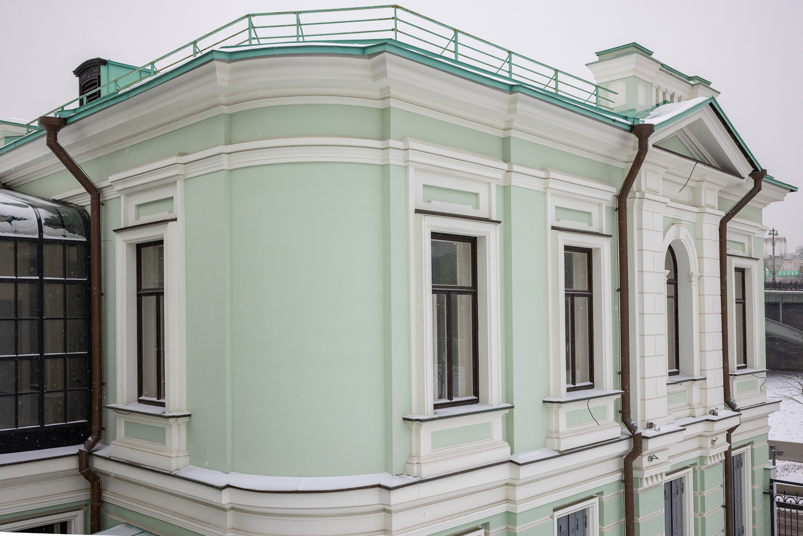 В 1895 году на площадке палисадника в северо-западной части усадьбы строится сохранившийся до настоящего времени двухэтажный флигель конторы, соединенный с главным домом небольшим объемом «зимнего сада». Последний этап исторического существования владения связан с размещением и деятельностью здесь кондитерской фабрики товарищества «Эйнем».