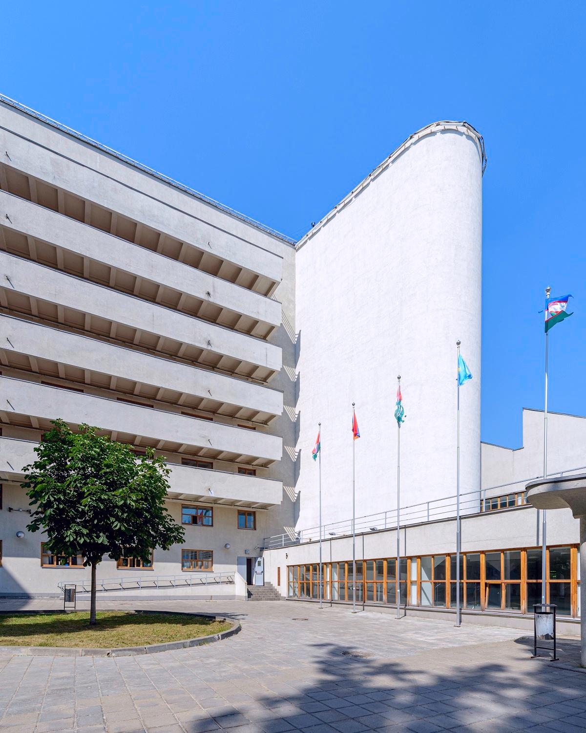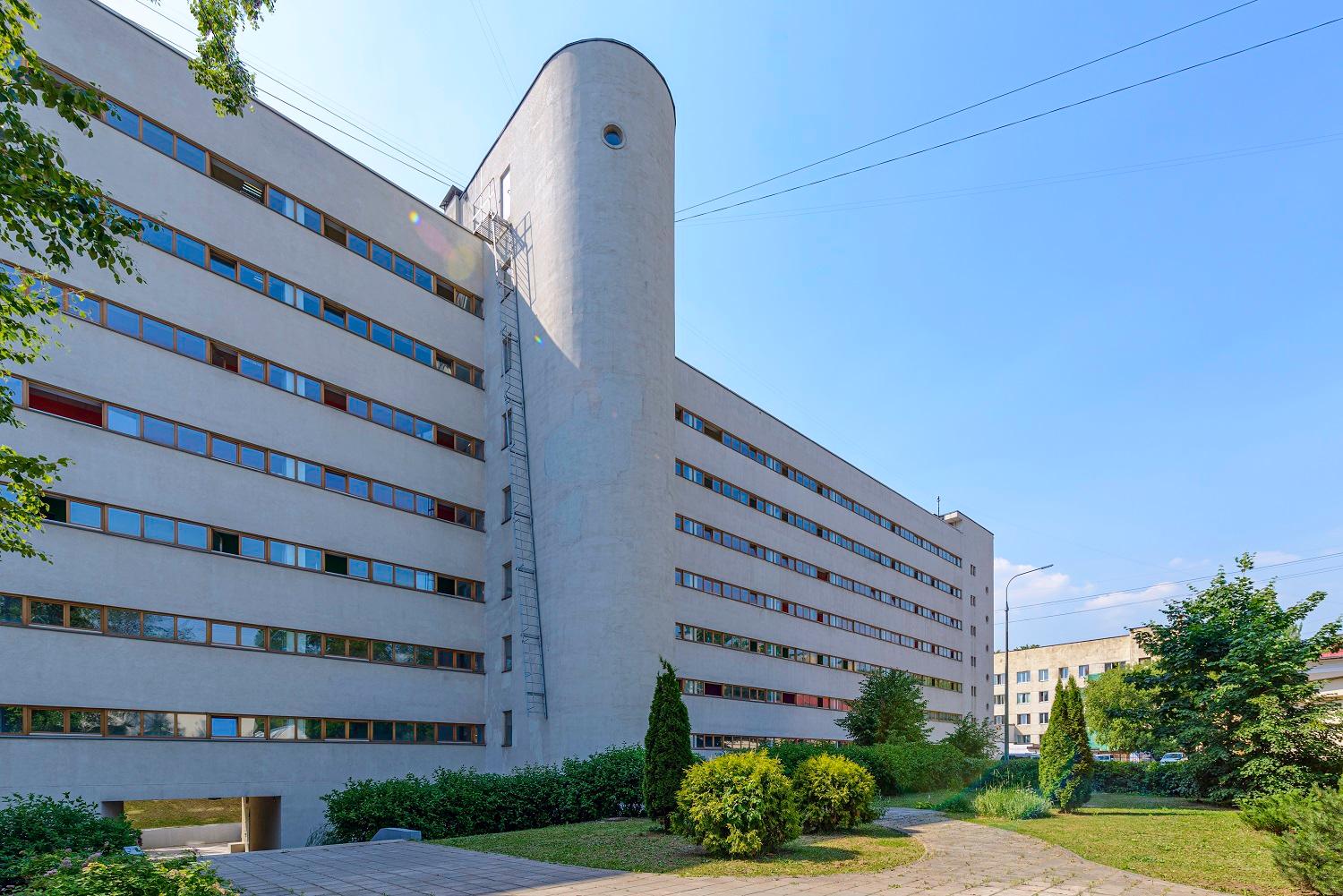 В 2015 году была завершена реставрация Санитарного корпуса. Одной из непростых задач стало восстановление оригинальных ограждений балконов, выполненных из монолитного железобетона, с сохранением их исторического рисунка. Особое внимание было уделено кровле: вместо скатной крыши, появившейся в более поздний период, восстановили плоскую, как в оригинальном проекте. Внутри пандуса был установлен панорамный лифт, который заменил собой изначально задуманный архитектором, но не реализованный в 1929 году патерностер.