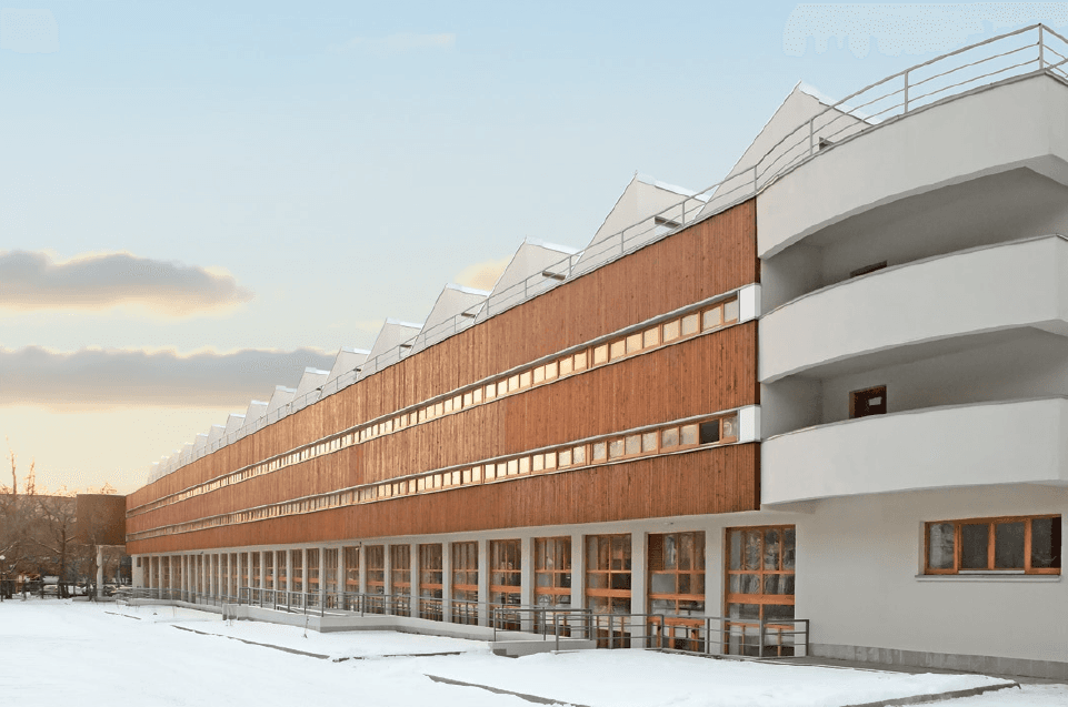 Спальный корпус, построенный на стальном каркасе, включал 1008 двухместных кабин, каждая из которых имела минимальные размеры — лишь для обеспечения отдыха. Санитарный корпус включал в себя помещения для гигиенических процедур, а учебный корпус был оборудован для учебы и проведения культурных мероприятий. Вся система зданий была спроектирована таким образом, чтобы обеспечить максимальное удобство и функциональность.