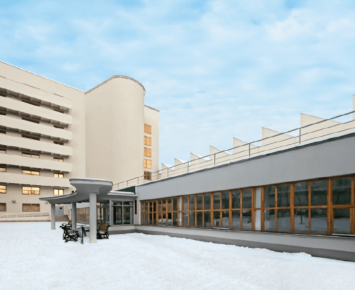 В 2015 году была завершена реставрация Санитарного корпуса. Одной из непростых задач стало восстановление оригинальных ограждений балконов, выполненных из монолитного железобетона, с сохранением их исторического рисунка. Особое внимание было уделено кровле: вместо скатной крыши, появившейся в более поздний период, восстановили плоскую, как в оригинальном проекте. Внутри пандуса был установлен панорамный лифт, который заменил собой изначально задуманный архитектором, но не реализованный в 1929 году патерностер.